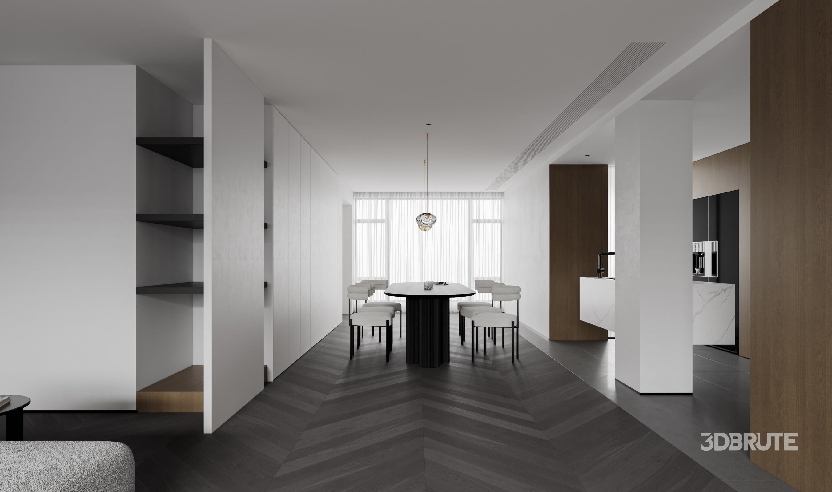 This Modern living room dining room 3D scene was built in 3ds Max 2022 and rendered using Corona. It includes clean geometry, proper scene organization, and is optimized for smooth rendering performance. The model setup follows standard practices, making it easy to import and adapt into a variety of workflows. Delivered in MAX format, it is well-suited for architectural visualization, concept development, or design presentation. Dominant color tones include: White tones, Beige tones, Silver tones. |