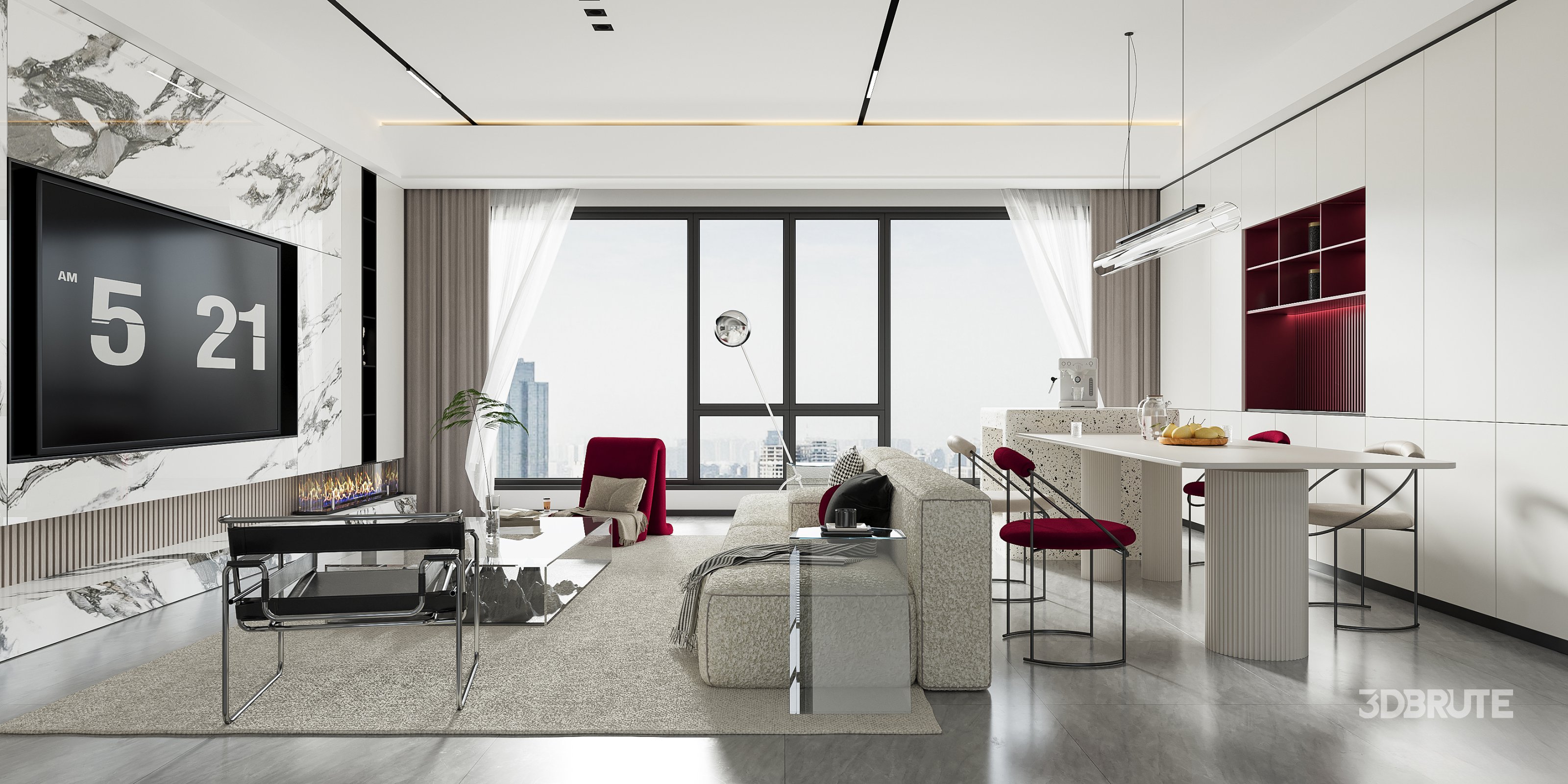 This Modern living room dining room 3D scene was built in 3ds Max 2021 and rendered using Corona. It includes clean geometry, proper scene organization, and is optimized for smooth rendering performance. The model setup follows standard practices, making it easy to import and adapt into a variety of workflows. Delivered in MAX format, it is well-suited for architectural visualization, concept development, or design presentation. Dominant color tones include: White tones, Beige tones, Silver tones. |
