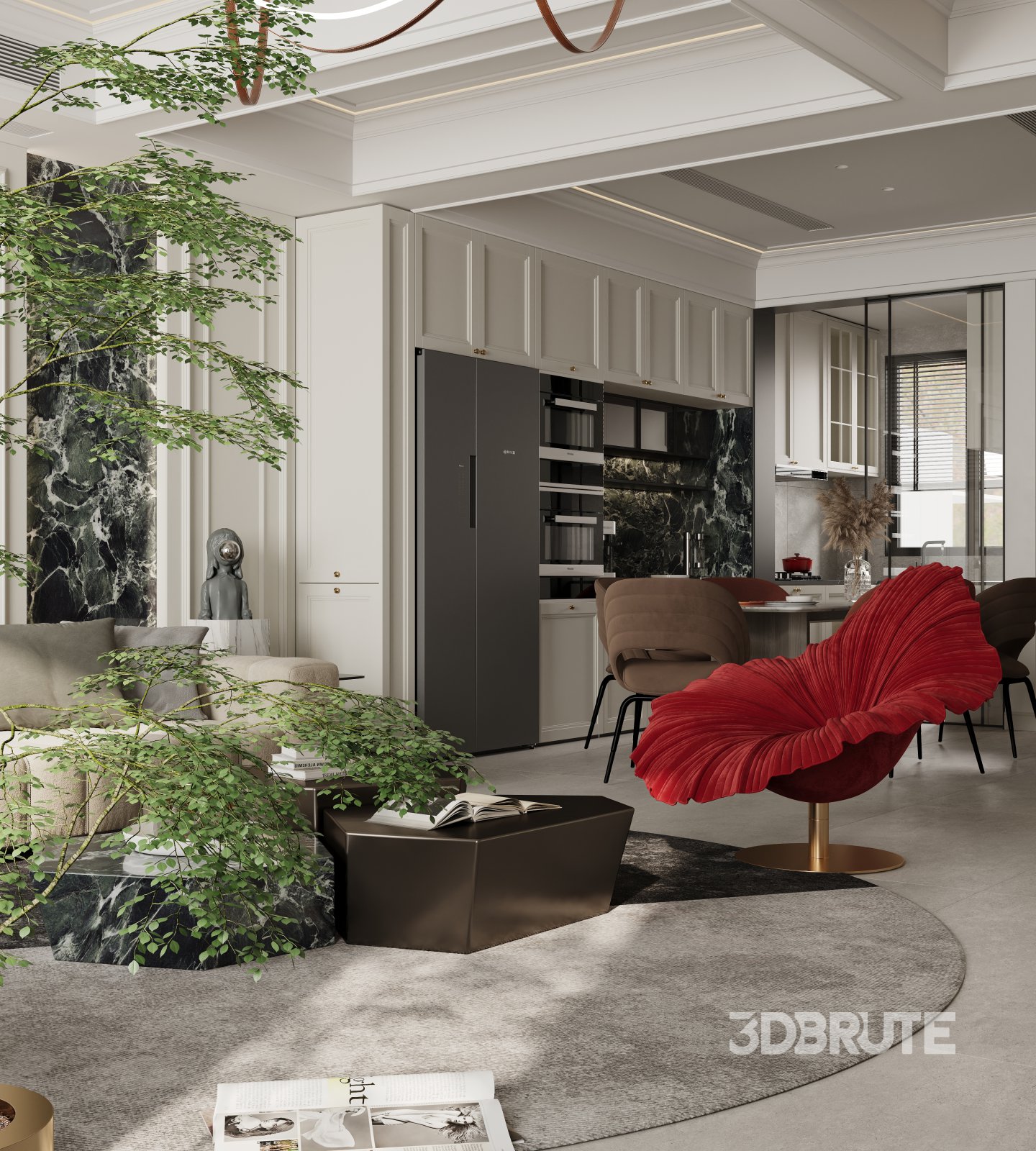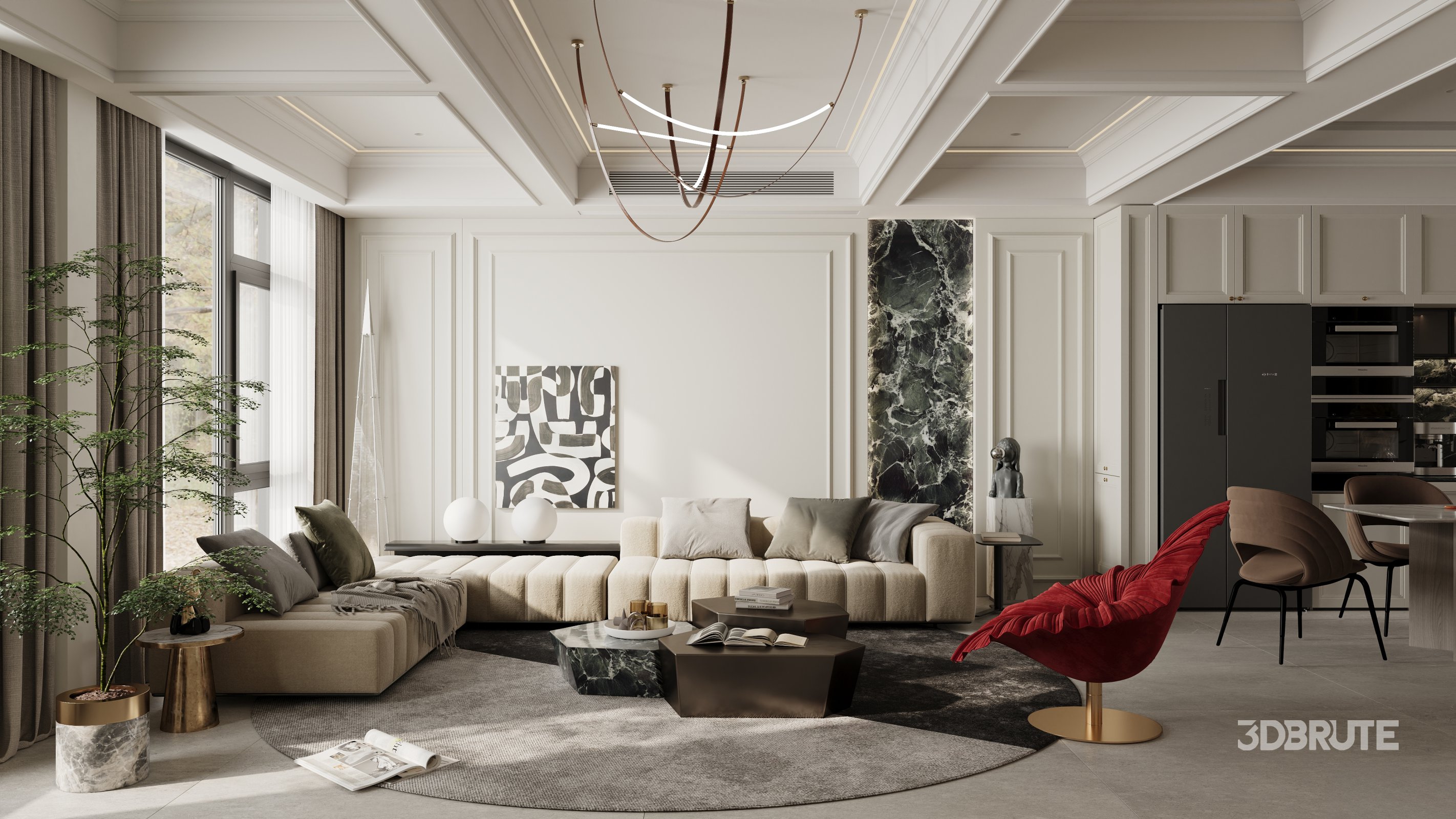 This Modern Luxurious living room and dining room 3D scene was built in 3ds Max 2021 and rendered using Corona. It includes clean geometry, proper scene organization, and is optimized for smooth rendering performance. The model setup follows standard practices, making it easy to import and adapt into a variety of workflows. Delivered in MAX format, it is well-suited for architectural visualization, concept development, or design presentation. Dominant color tones include: White tones, Beige tones, Silver tones, Gray tones. |