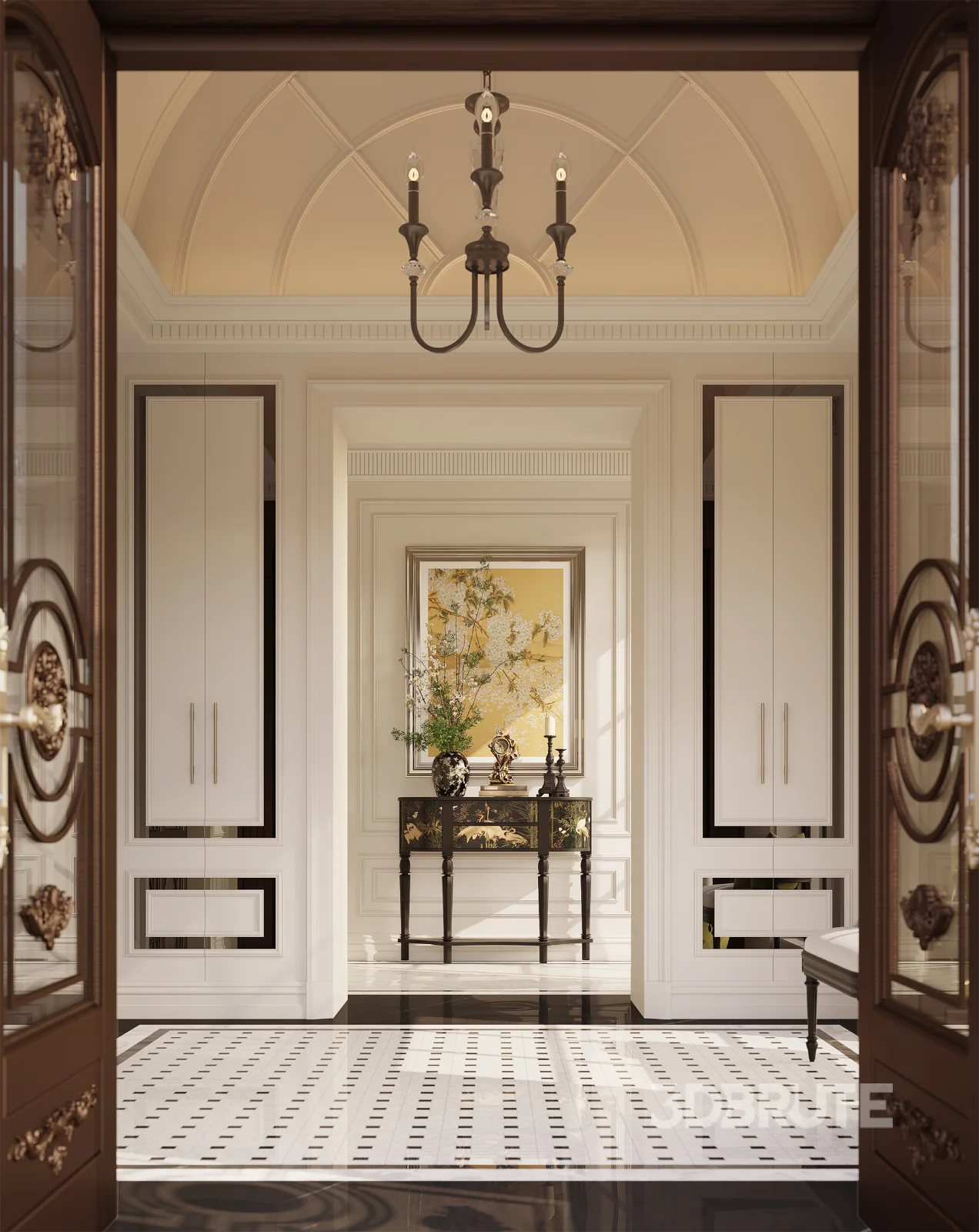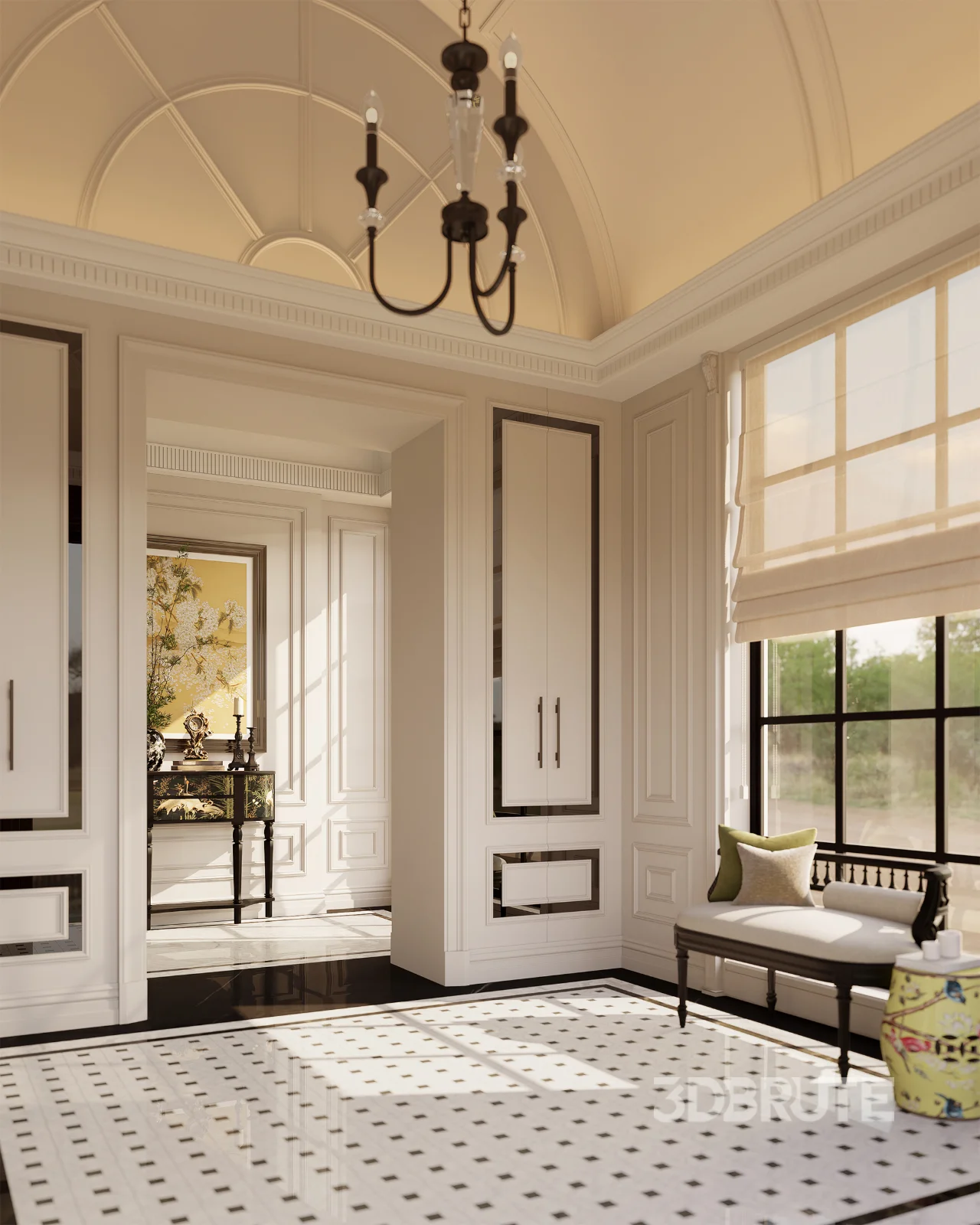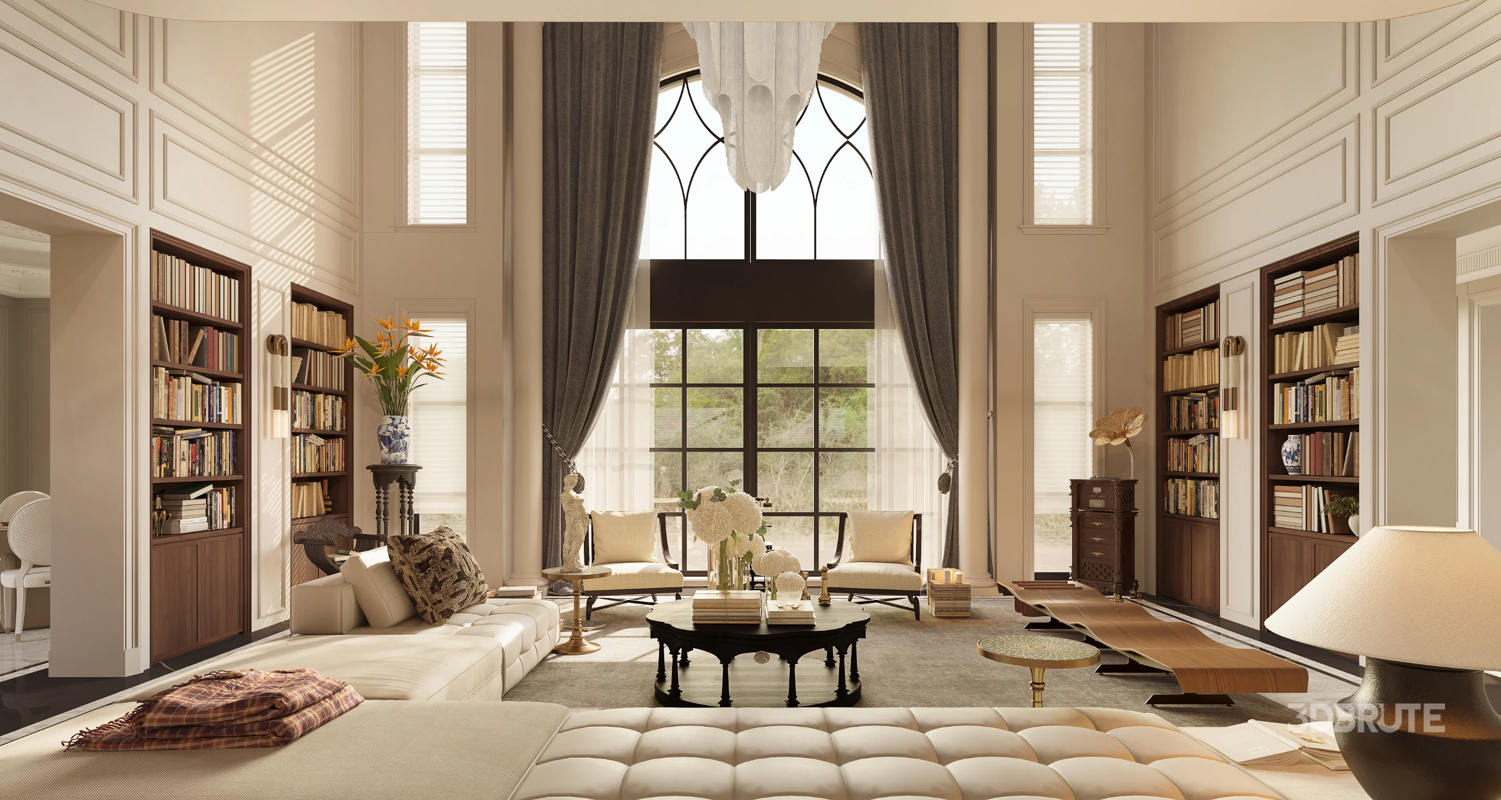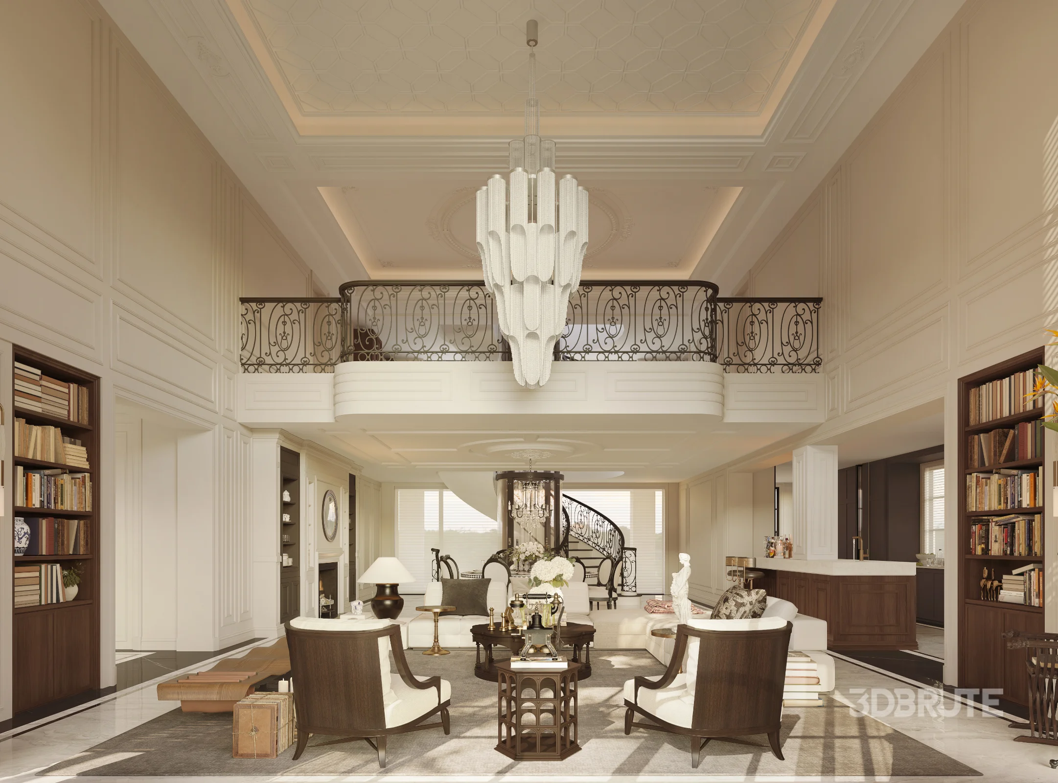 Luxury villa living room and dining room hallway |