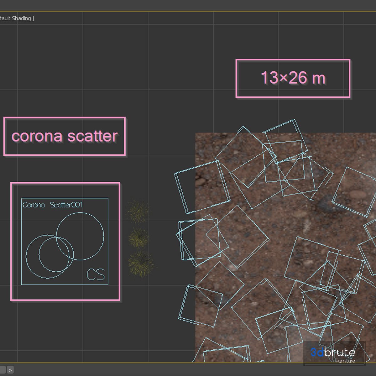 Description: 2- Vray + Standard 3ds max file is also in archive 3- scattered objects are not OBJ, just the main Objects. 4- Corona Scattter settings Screenshots. 5- Materials is archive (material library) 6- Corona Scatter File: Polys: 63k + Verts: 76k 7- 4K texture + 4K material 8- BMP + JPEG (texture), MAX + OBJ + Screenshots. 9- 3dmodels: MAX 2015 + OBJ 10- Corona render + Vray (Renderer Engine-MAX) 11- Models has unwrapped overlapping and |