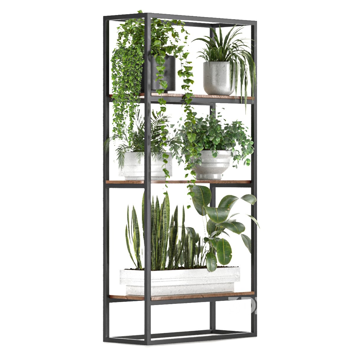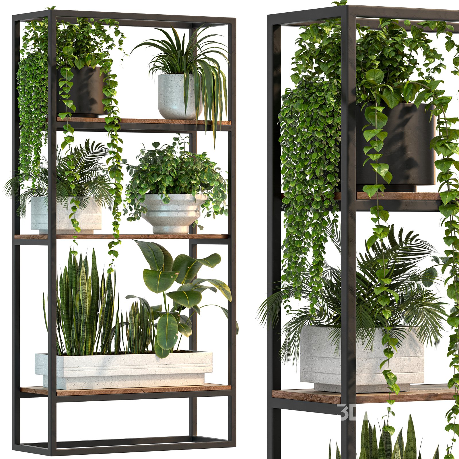Technical Information Product Name: Metal Stand & Wooden Shelf Plant Software: 3ds Max 2018 Export Formats: .FBX / .OBJ Render Engines: V-Ray 6 / Corona 12 Dimensions: 118 × 77 cm – Height: 209 cm Polygons: 518,206 Vertices: 554,718 Main Materials: Metal, Wood File Includes: Full 3D plant shelf with detailed foliage and realistic materials English Description Metal Stand & Wooden Shelf Plant is a premium-quality 3D model featuring a modern vertical plant display system that combines a sleek black metal frame with natural wooden shelves. Designed for contemporary interiors, this piece merges functionality and aesthetics, bringing a refreshing botanical element into any space. The model includes a diverse selection of realistic plants - from cascading vines to upright foliage - all meticulously detailed to ensure photorealistic results in both close-up and wide-angle renders. The natural wooden shelves contrast beautifully with the industrial-style metal structure, creating a balanced and elegant visual composition. This versatile model is ideal for interior visualizations such as living rooms, office spaces, lobbies, cafes, or commercial showrooms, and works perfectly as a green divider or decorative focal point. With optimized geometry and high-quality materials, it's ready for immediate use in any visualization project. |