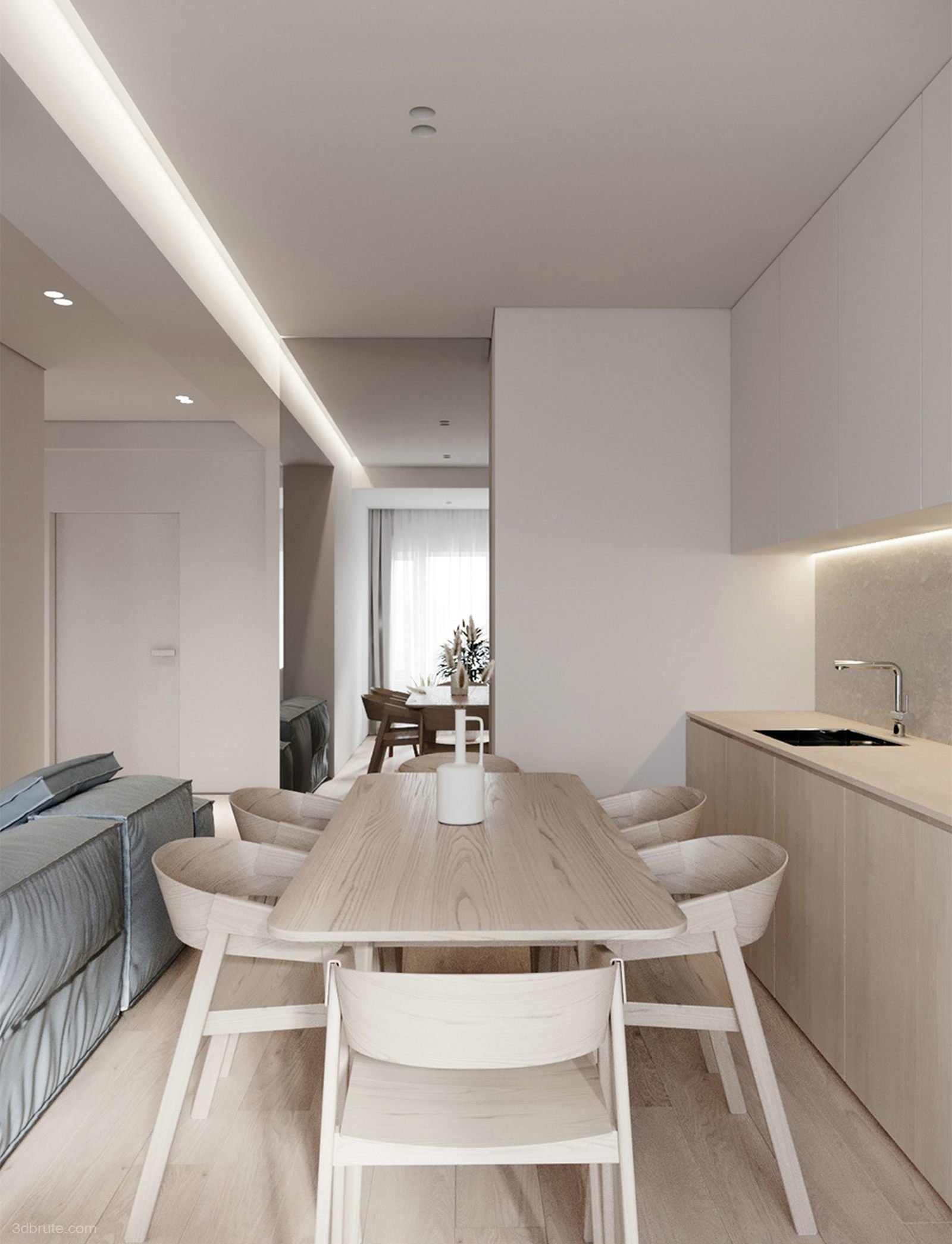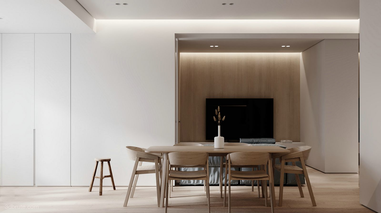 Minimal white meet wood-a small warm and comfortable apartment