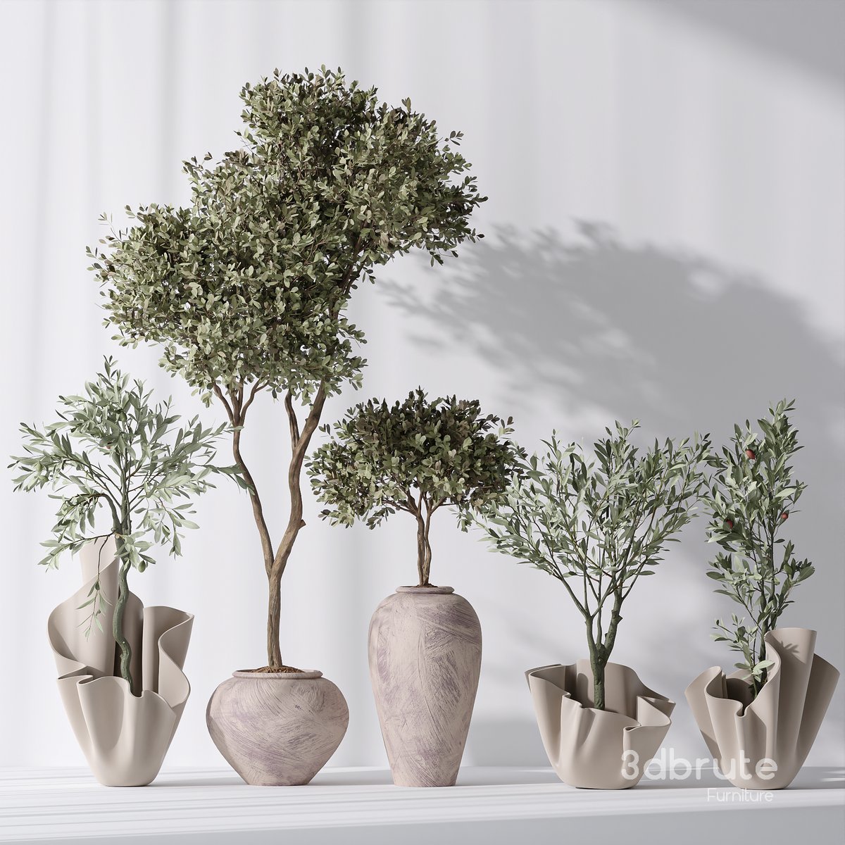 Mission Olive Tree Indoor Vase 01 5 Different 3D models in the scene Height: 1m & 1.1m & 1.2m & 2m LLittle Ollie dwarf olive is a fabulous evergreen foliage shrub. It has a small, dense growth habit that makes it perfect for small gardens or patio spaces. Its natural size and shape is lovely but it can also be easily trained as a topiary or sheared as a formal hedge. Although its winter hardiness is limited, this plant is happy to grow in a container that can then be moved to a protected space for the winter in cold regions. This olive does not bear fruit; it is an purely ornamental plant. 1- Materials is archive (material library) Note: - To use the max file you need to use at 3dsmax 2015 If you have any problems for setting up the models, |