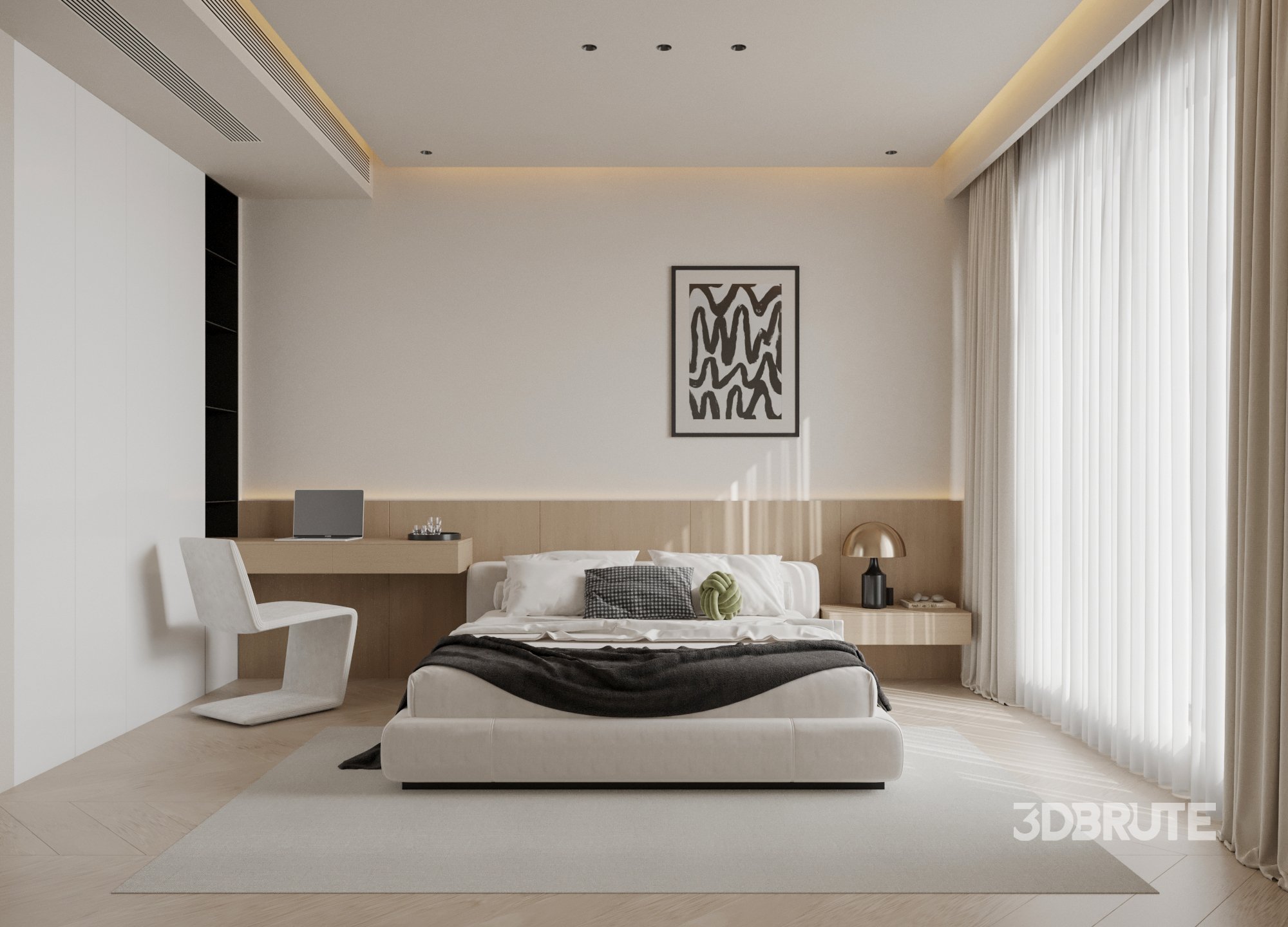 This Modern bedroom and bathroom 3D scene was built in 3ds Max 2021 and rendered using Corona. It includes clean geometry, proper scene organization, and is optimized for smooth rendering performance. The model setup follows standard practices, making it easy to import and adapt into a variety of workflows. Delivered in MAX format, it is well-suited for architectural visualization, concept development, or design presentation. Dominant color tones include: White tones, Beige tones, Silver tones, Gray tones. |