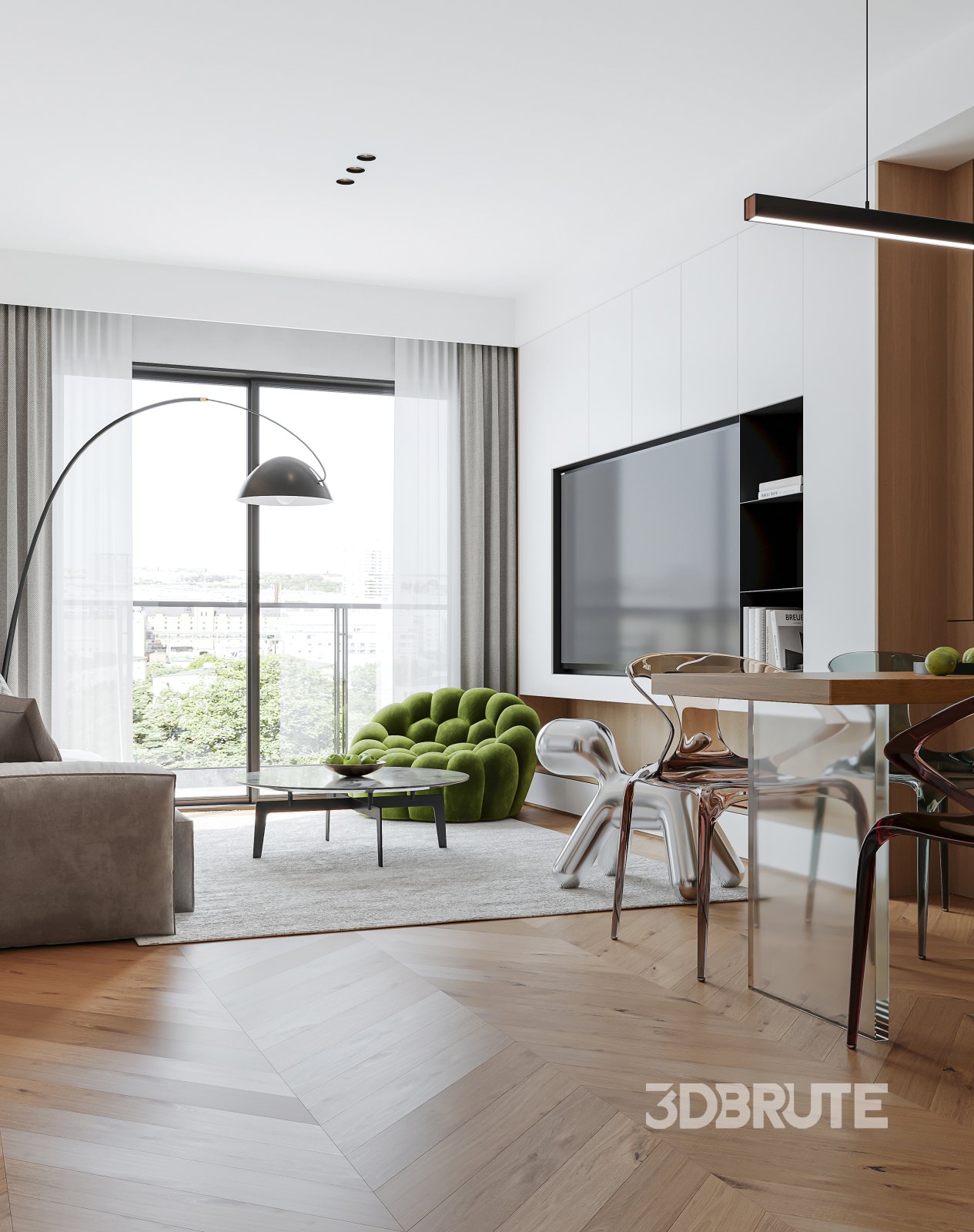 This Modern living room and dining room interior scene 3D scene was built in 3ds Max 2021 and rendered using Corona. It includes clean geometry, proper scene organization, and is optimized for smooth rendering performance. The model setup follows standard practices, making it easy to import and adapt into a variety of workflows. Delivered in MAX format, it is well-suited for architectural visualization, concept development, or design presentation. Dominant color tones include: White tones, Beige tones, Silver tones. |