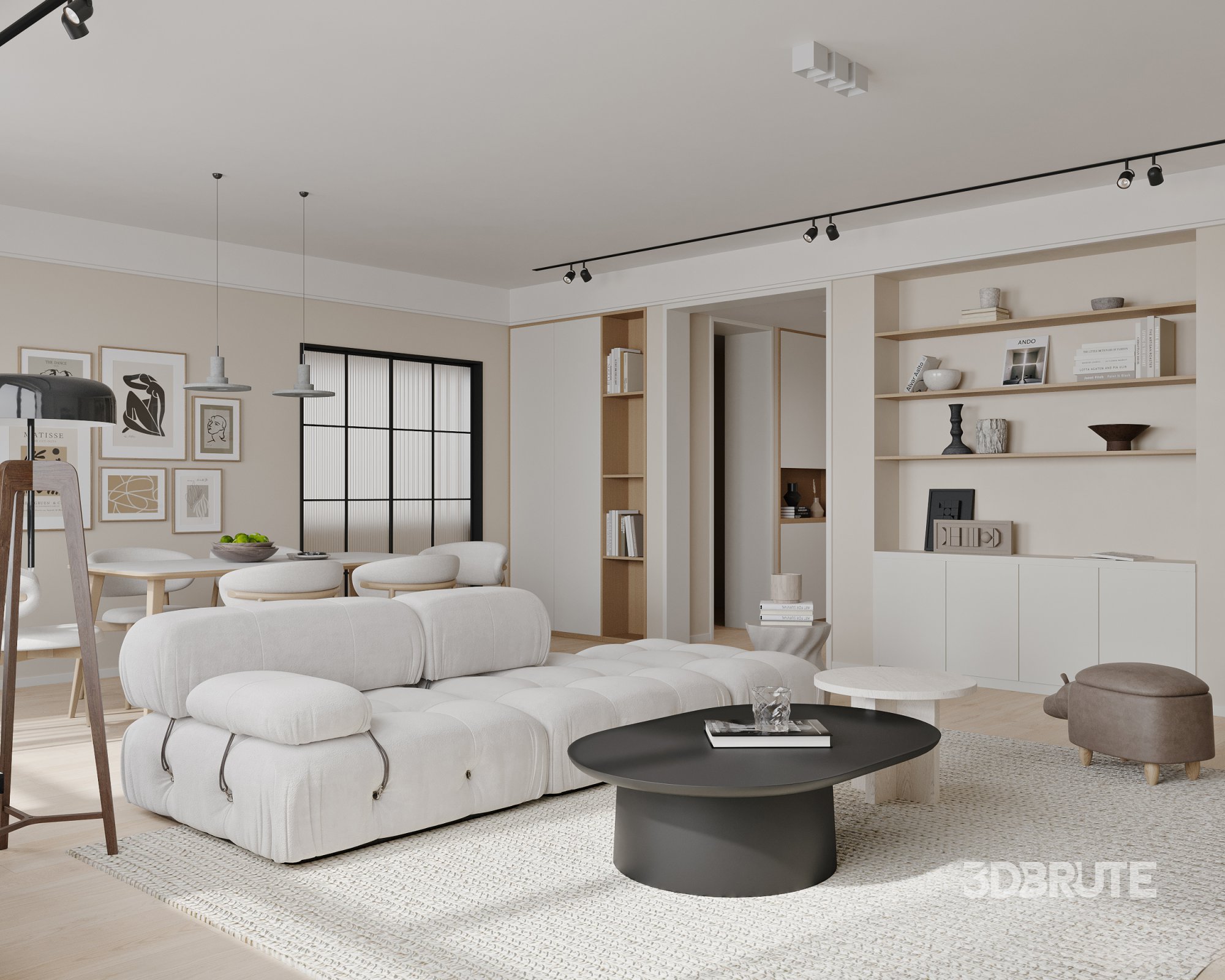 This Modern living room and dining room interior scene 3D scene was built in 3ds Max 2021 and rendered using Corona. It includes clean geometry, proper scene organization, and is optimized for smooth rendering performance. The model setup follows standard practices, making it easy to import and adapt into a variety of workflows. Delivered in MAX format, it is well-suited for architectural visualization, concept development, or design presentation. Dominant color tones include: White tones, Beige tones, Silver tones. |