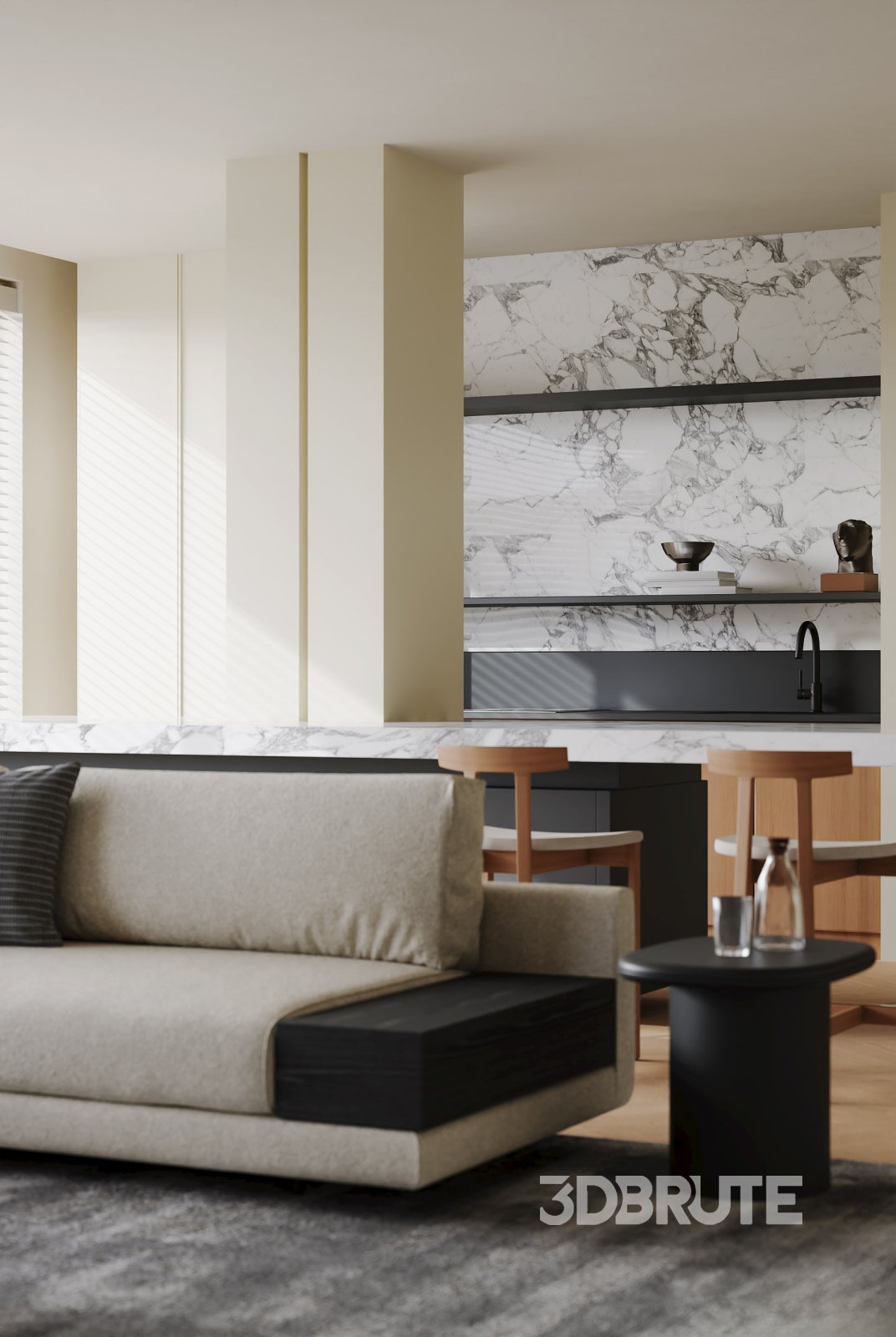 This Modern living room and dining room interior scene 3D scene was built in 3ds Max 2021 and rendered using Corona. It includes clean geometry, proper scene organization, and is optimized for smooth rendering performance. The model setup follows standard practices, making it easy to import and adapt into a variety of workflows. Delivered in MAX format, it is well-suited for architectural visualization, concept development, or design presentation. Dominant color tones include: White tones, Beige tones, Silver tones, Gray tones. |