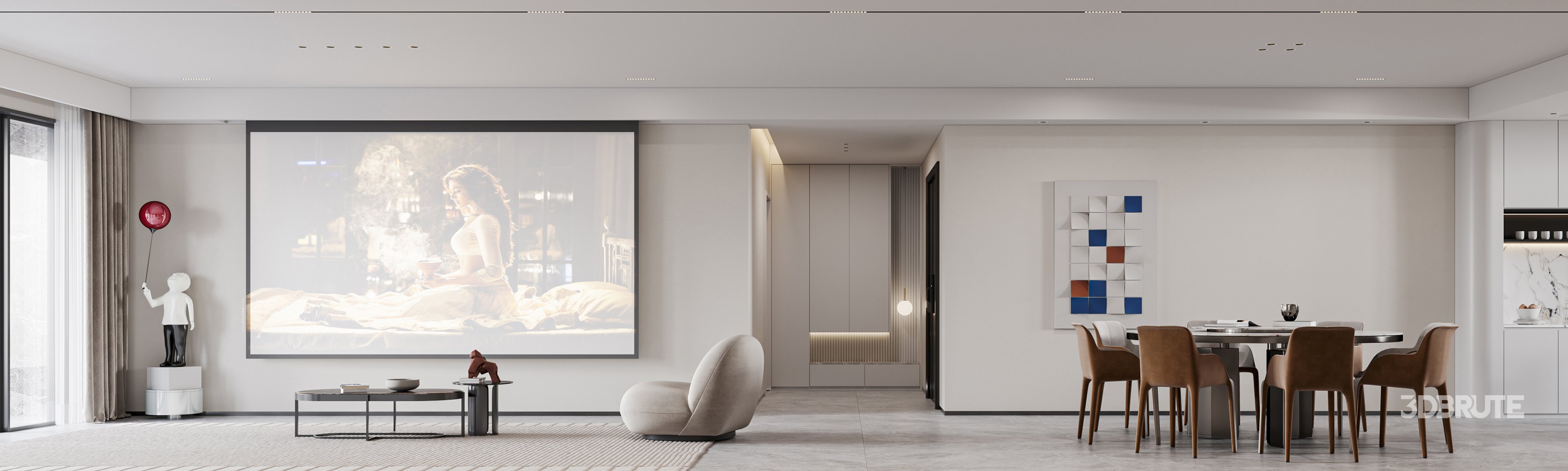 This Modern living room and dining room interior scene 3D scene was built in 3ds Max 2021 and rendered using Corona. It includes clean geometry, proper scene organization, and is optimized for smooth rendering performance. The model setup follows standard practices, making it easy to import and adapt into a variety of workflows. Delivered in MAX format, it is well-suited for architectural visualization, concept development, or design presentation. Dominant color tones include: White tones, Beige tones, Silver tones. |