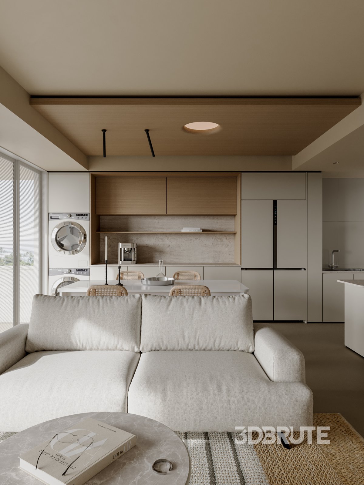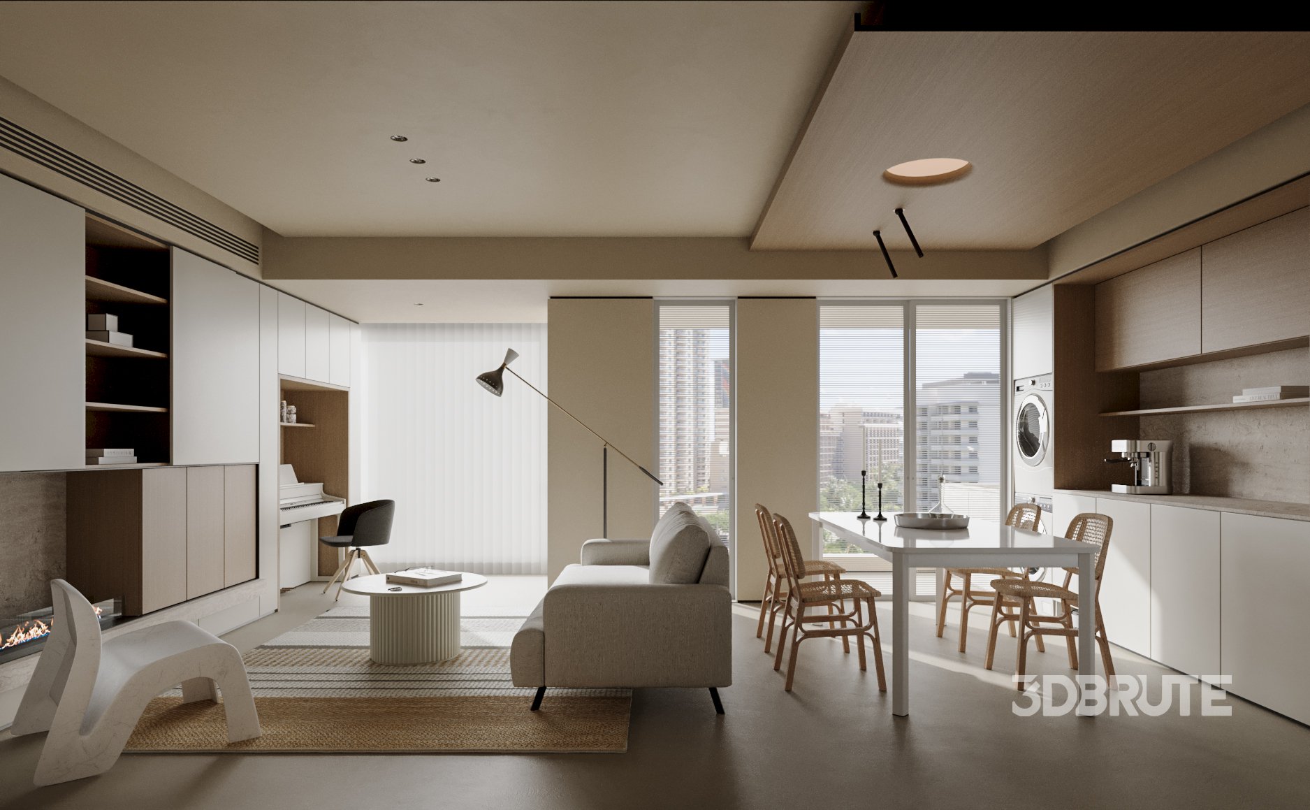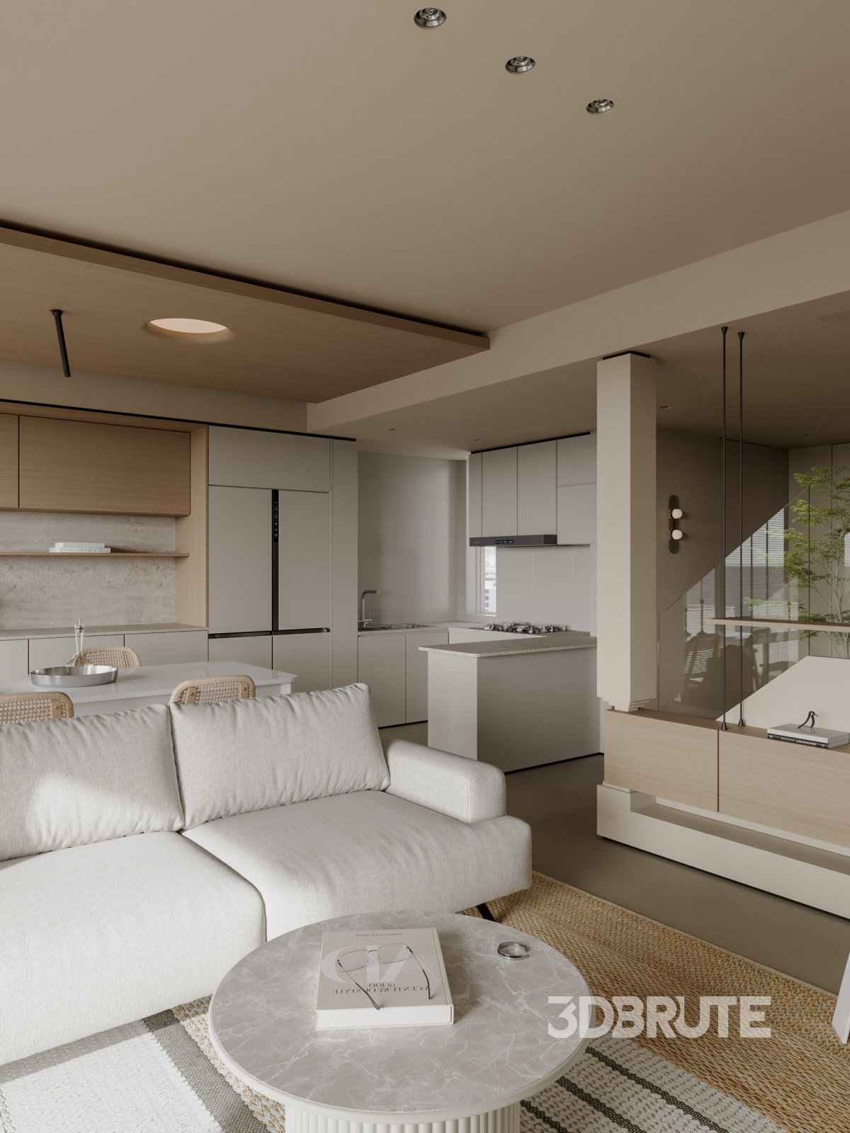 Modern living room dining room kitchen |