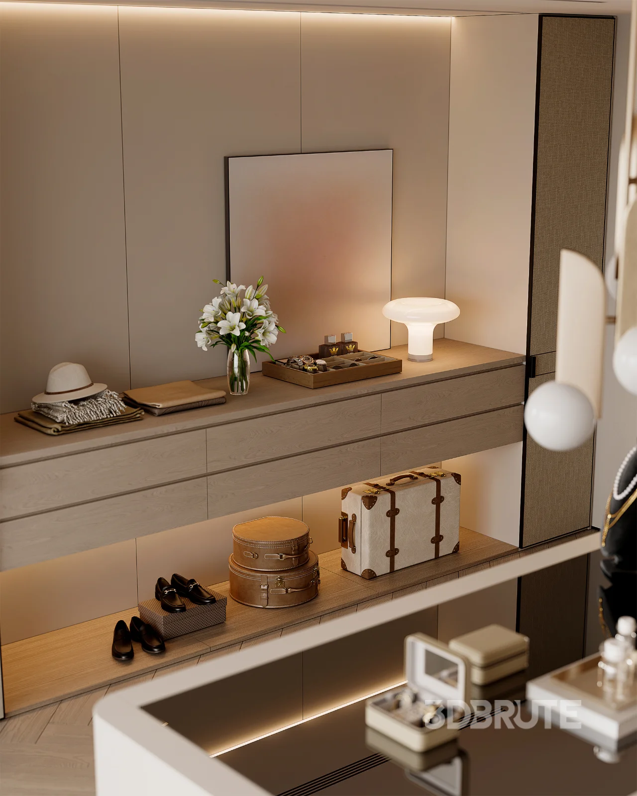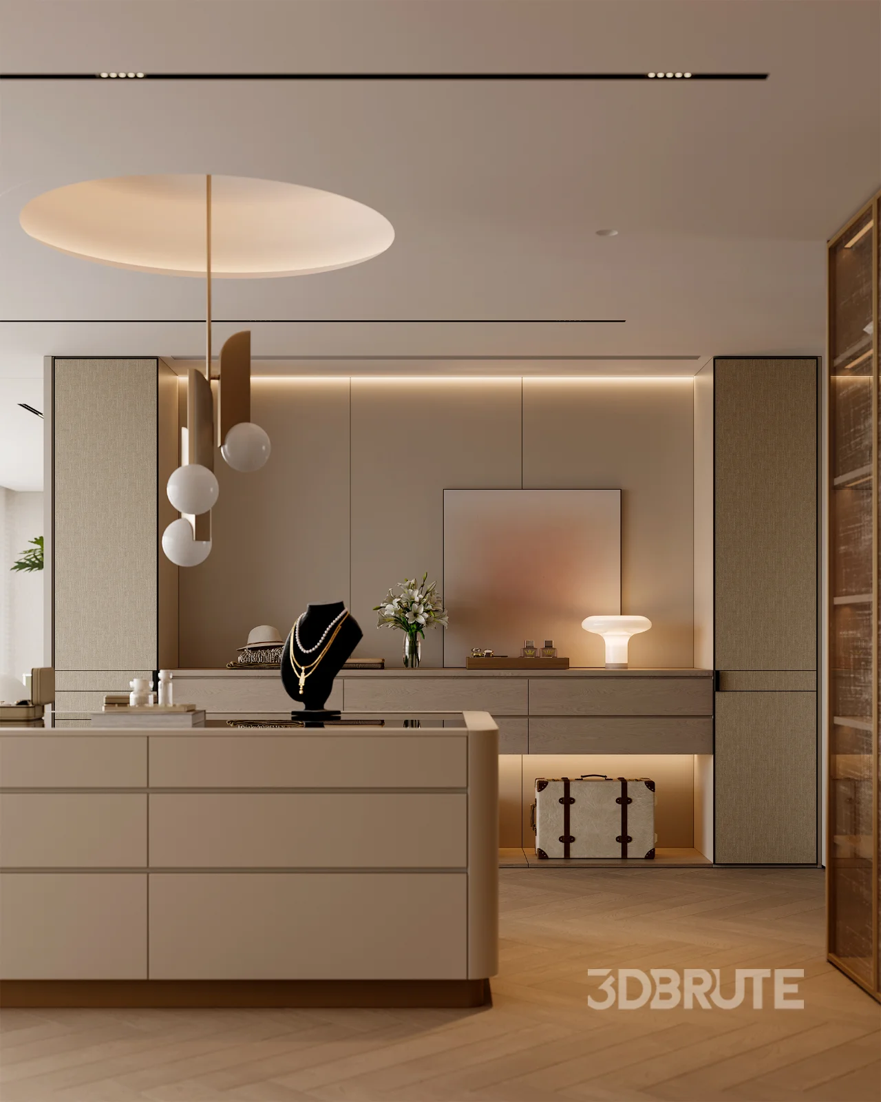 Modern master bedroom dressing room and work room |