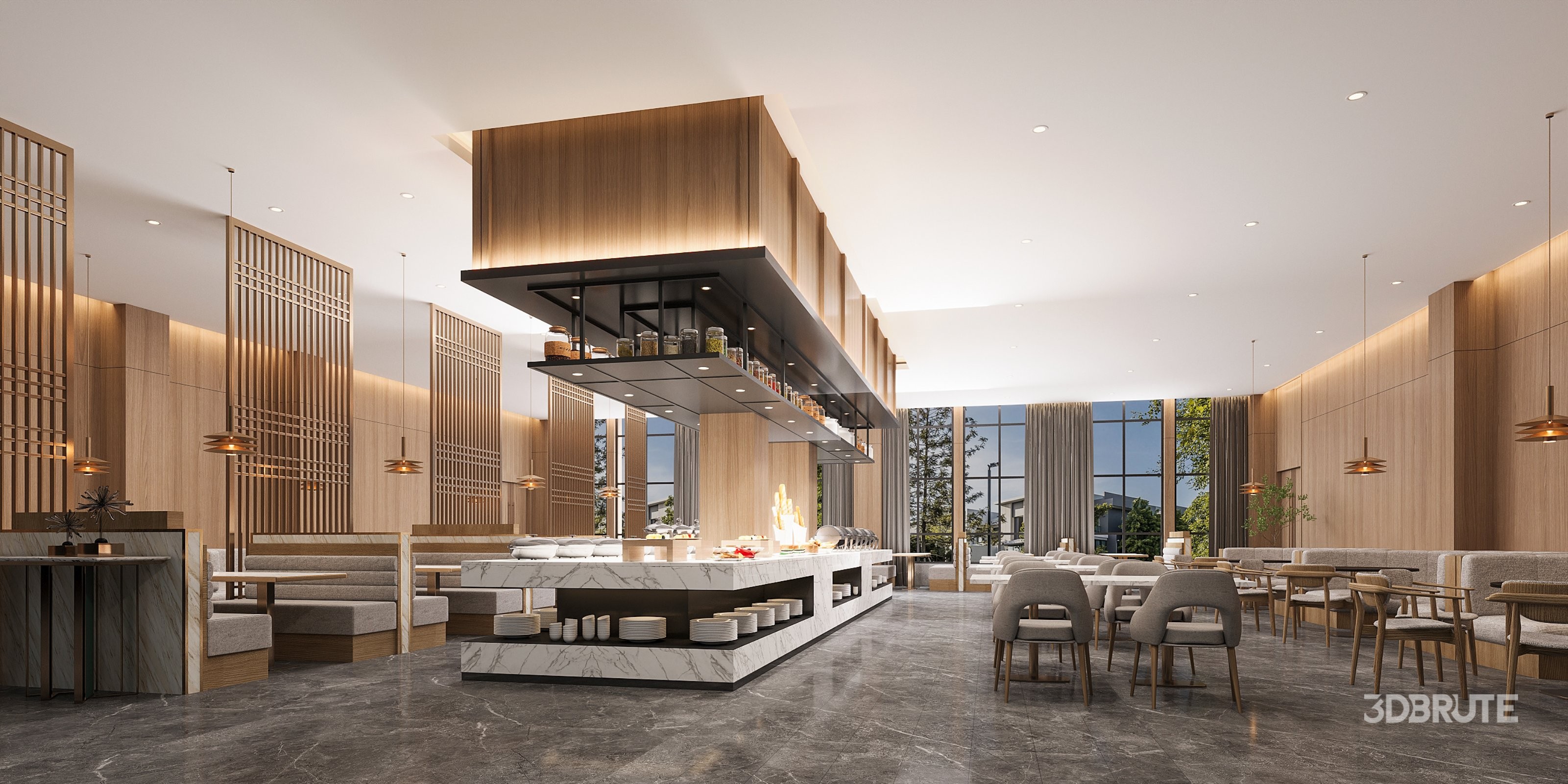 This modern restaurant 3D scene was built in 3ds Max 2018 and rendered using Vray. It includes clean geometry, proper scene organization, and is optimized for smooth rendering performance. The model setup follows standard practices, making it easy to import and adapt into a variety of workflows. Delivered in MAX format, it is well-suited for architectural visualization, concept development, or design presentation. |