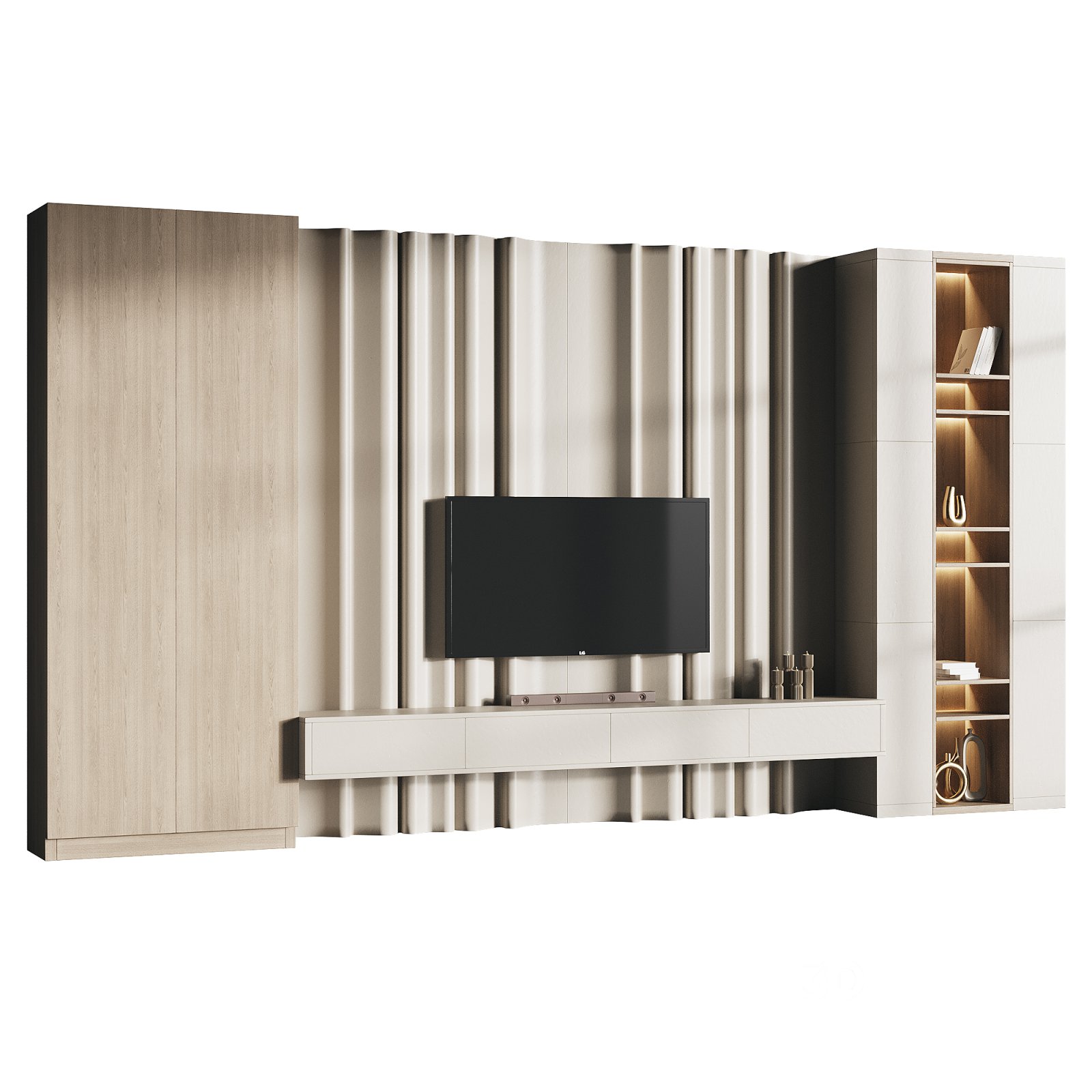 Name: Modern TV Wall 03 Description: Tags: TV wall 3D model, media wall unit, modern entertainment wall, Corona Renderer interior, minimalist wall unit, FBX TV setup, OBJ living room furniture, 3Ds Max TV model, home theater design, wall-mounted cabinet 3D, shelving and storage unit, modular TV wall, contemporary TV furniture, architectural visualization, realistic media center, built-in storage model, interior decor wall, designer TV unit, living space layout, high-end furniture 3D |