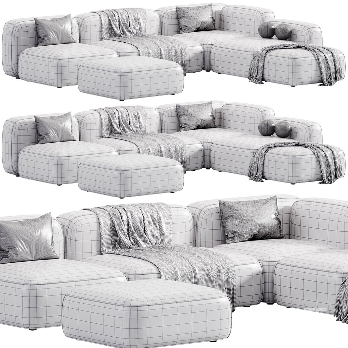 Name: Modular HIPPO sofa MANO FACTORY Version: 2015 Units: Millimeters Dimension: 3400 x 2750 x 700 Polys: 557430 XForm: Yes Render: Corona Formats: 3Ds Max 2015, OBJ, https://manofactory.ru/tproduct/690865862-910738233902-hippo-konfiguratsiya-5-s-raskladnim-meha |