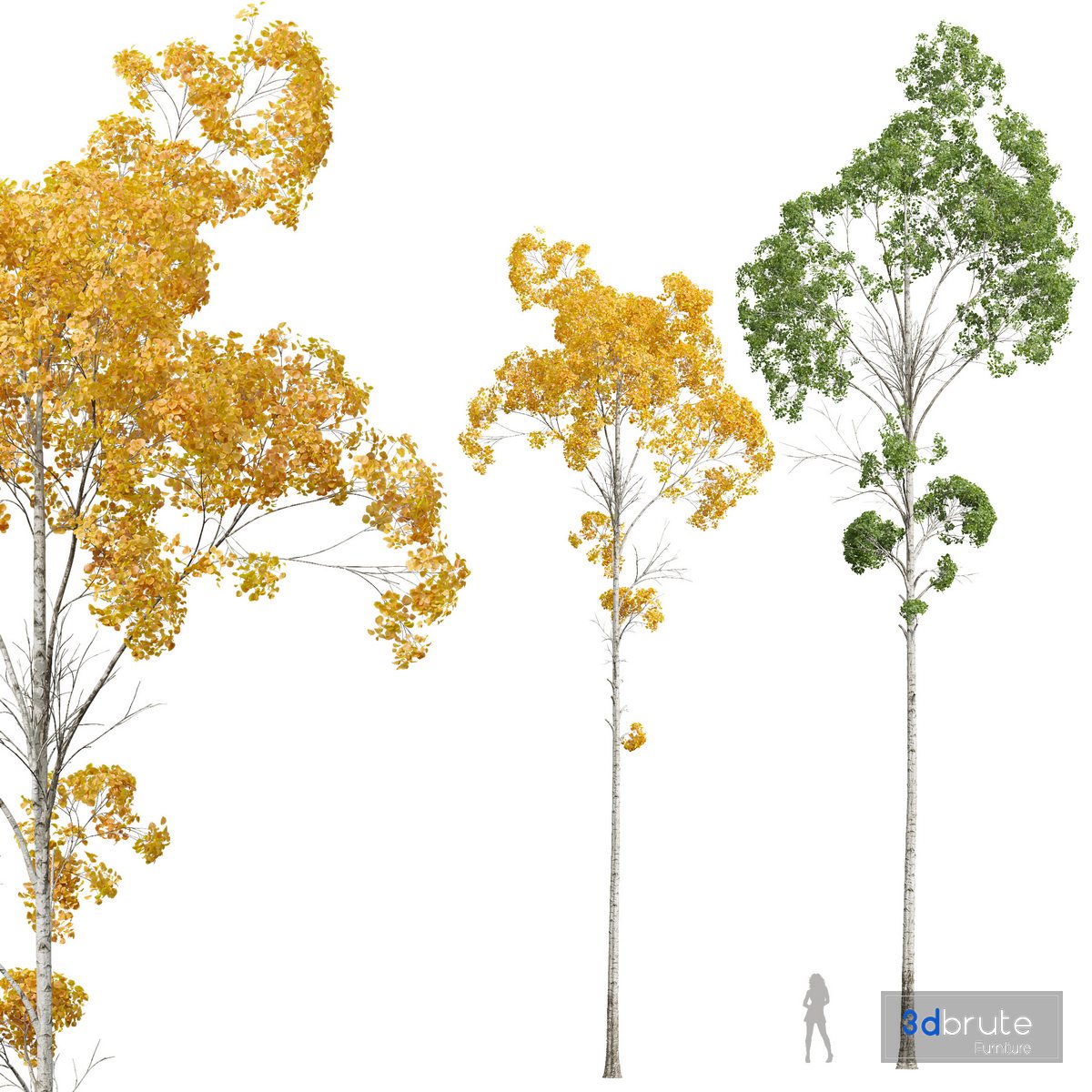 Description: Populus tremuloides is a deciduous tree native to cooler areas of North America, one of several species referred to by the common name aspen. It is commonly called quaking aspen, trembling aspen, American aspen, mountain or golden aspen, trembling poplar, white poplar, and popple, as well as others. The trees have tall trunks, up to 25 meters (82 feet) tall, with smooth pale bark, scarred with black. The glossy green leaves, dull beneath, become golden to yellow, rarely red, in autumn. The species often propagates through its roots to form large clonal groves originating from a shared root system. These roots are not rhizomes, as new growth develops from adventitious buds on the parent root system (the ortet). 2 Different 3D models in the scene Height: 18000mm & 23000mm Big Preview: 1- Materials is archive (material library) Note: - To use the max file you need to use at 3dsmax 2015 If you have any problems for setting up the models, |