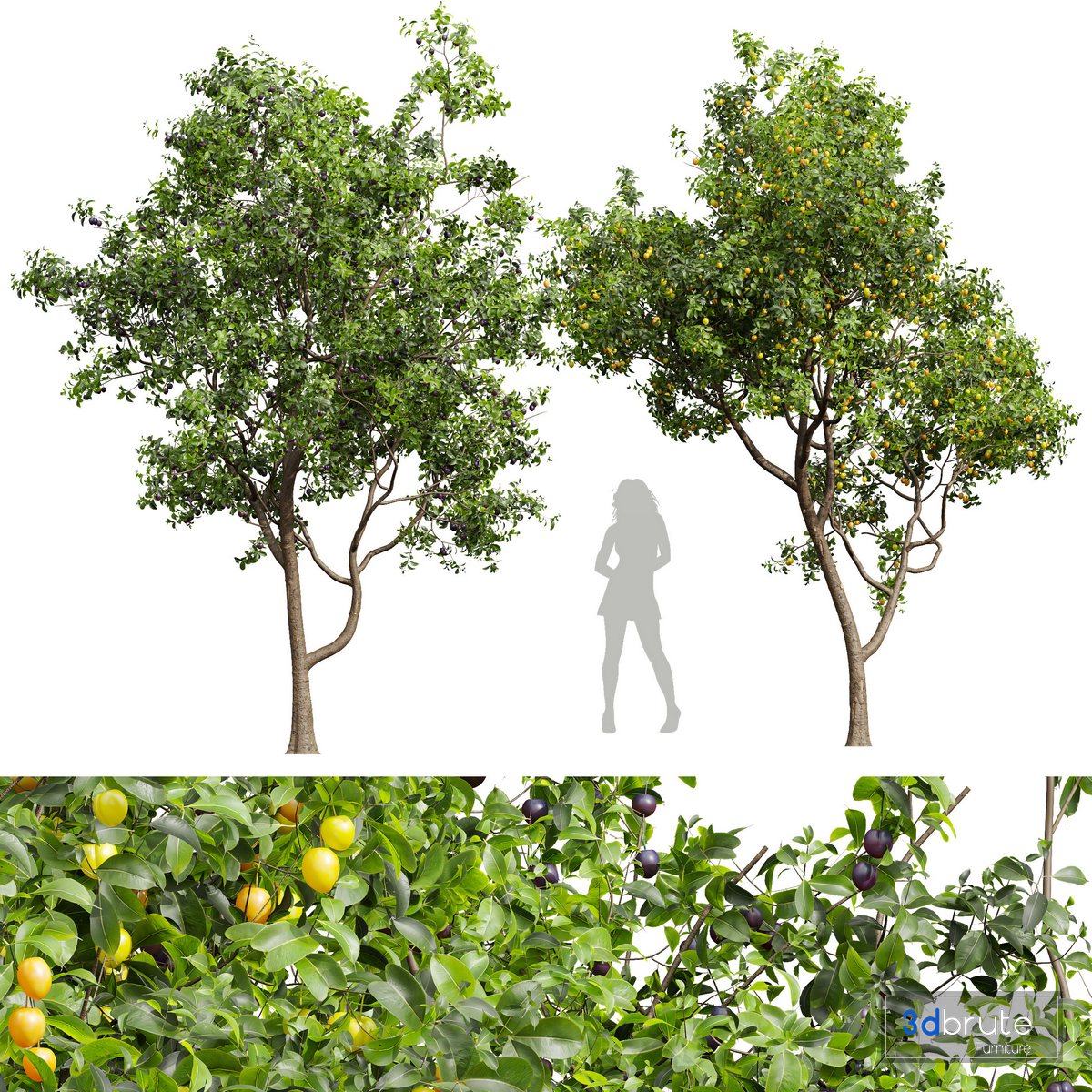 Description: Shiro plum, known for its medium to large, round bright yellow fruit has a mild sweet flavour. Excellent for fresh eating, cooking, canning, preserves and desserts, it is a consistent bearer of fruit. It is one of the earliest ripening plums. very hardy. Requires pollination from other Japanese plums (Prunus salicina) varieties. Ripens in early August. 2 Different 3D models in the scene Height: 5300 mm & 5200 mm Big Preview: 1- Materials is archive (material library) Note: - To use the max file you need to use at 3dsmax 2015 If you have any problems for setting up the models, |