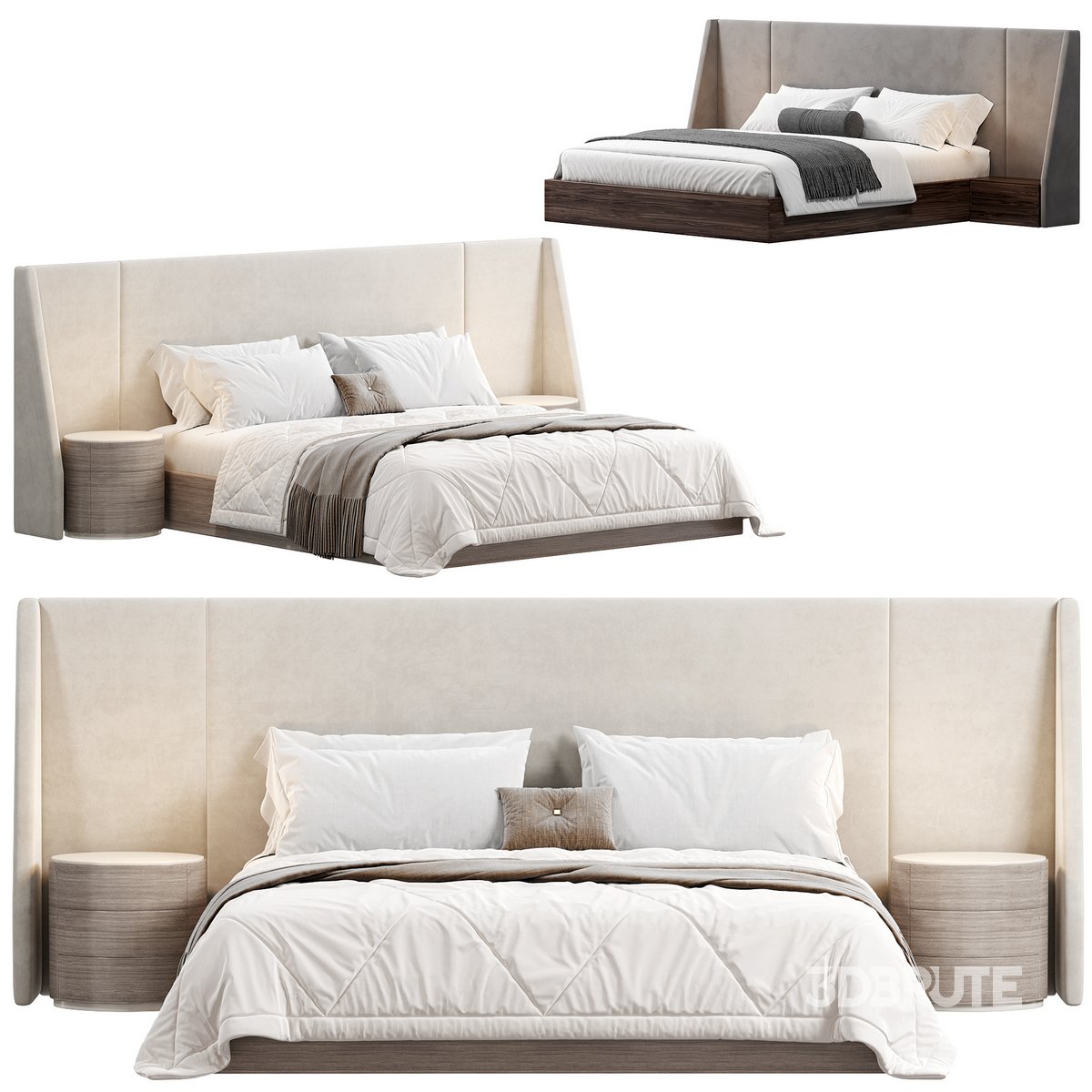 Nova Domus Janice Modern Bed and Nightstands by modishstore Version: 2015 https://www.modishstore.com/products/nova-domus-janice-modern-grey-fabric-and-walnut-bed-and-nightstands |