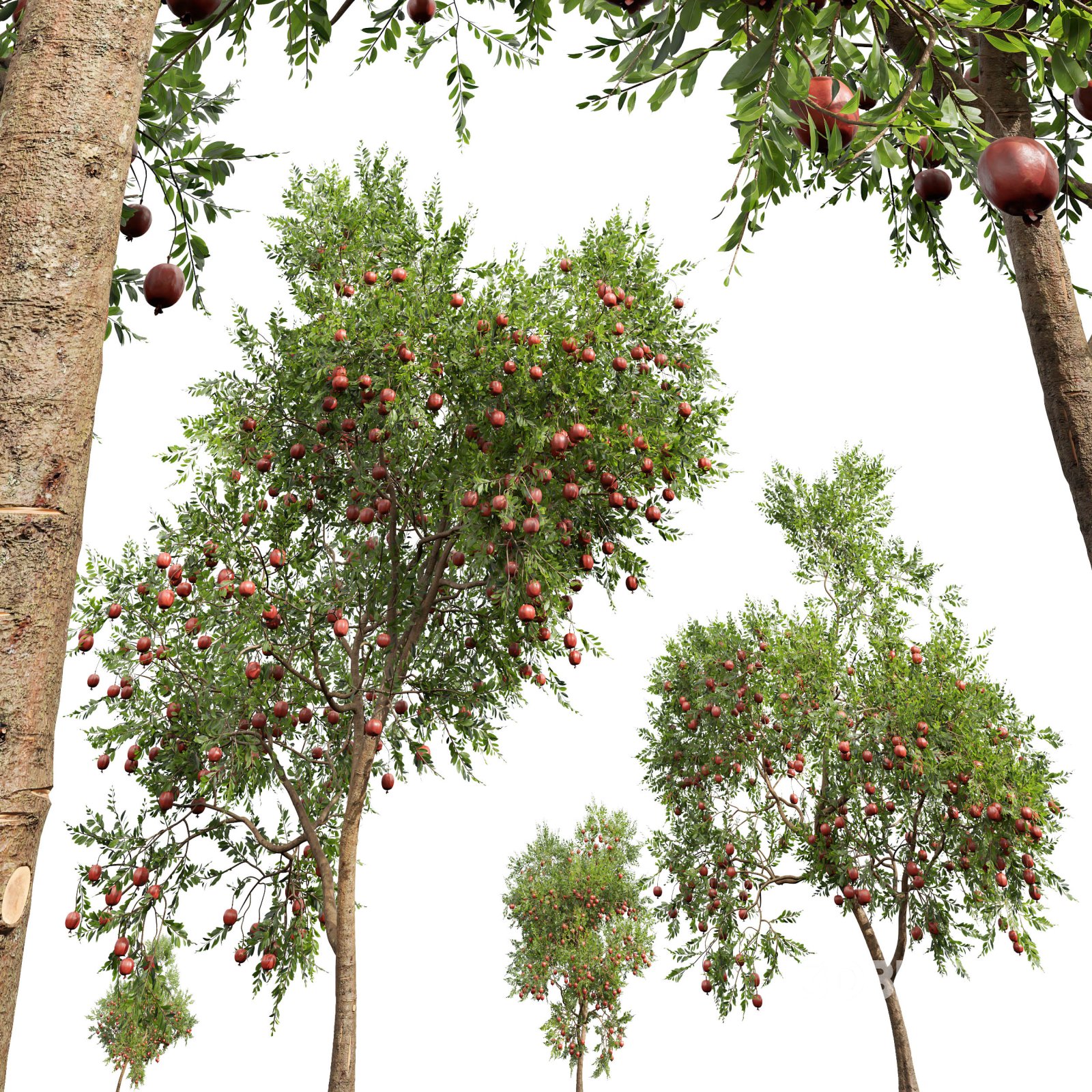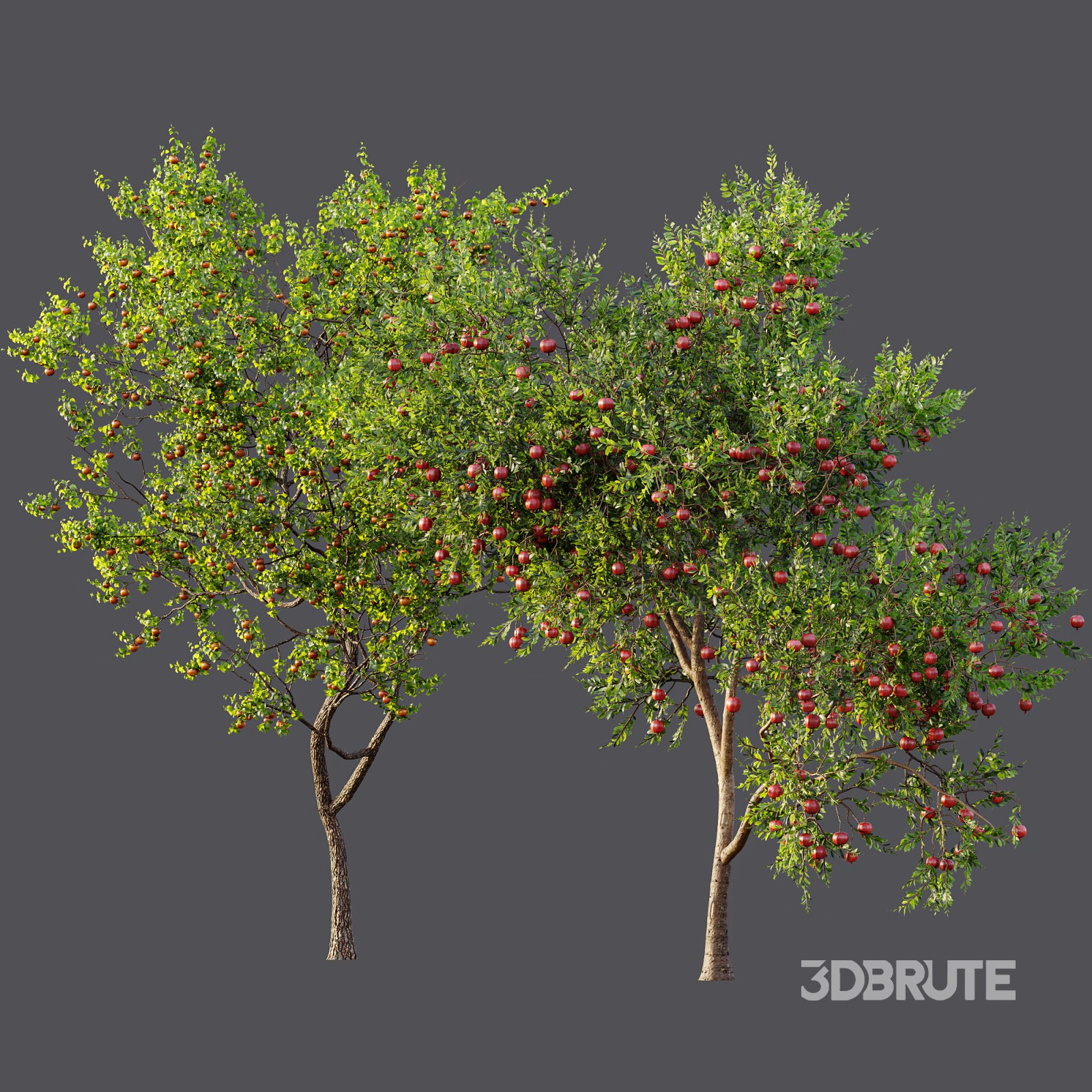 AV Fruit Trees Punica Granatum Pomegranate and Diospyros Kaki Persimmon This exceptional 3D model set presents two magnificent fruit trees — the **Punica granatum** (Pomegranate) and the **Diospyros kaki** (Persimmon) — both captured in their peak fruit-bearing season for unmatched realism and visual richness. The **Pomegranate tree**, native to regions stretching from Iran to northern India and widely cultivated in Mediterranean climates, is portrayed with an abundance of deep crimson fruits nestled among vibrant green foliage. Its twisting branches and dense canopy bring a strong architectural presence, making it ideal for both ornamental and productive garden designs. Standing beside it, the **Persimmon tree**, originating from East Asia, showcases its iconic orange-golden fruits that contrast beautifully against lush green leaves. The delicately textured bark and organic branching structure provide an authentic, nature-inspired aesthetic. Both trees are modeled at substantial heights of over 6 meters, making them perfect for realistic orchard scenes, villa landscapes, and high-end visualizations that demand botanical accuracy and artistic appeal. Height: 6.5 m, 6.8 m If you have any problems for setting up the models, send me a message here. |