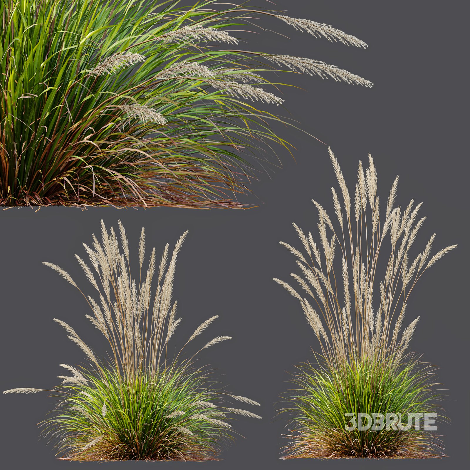 ntal grass hybrid that brings vertical elegance to any garden or architectural visualization. Originally cultivated in Germany and widely popularized across Europe and North America, this perennial grass features upright, feather-like plumes and narrow green blades that shift to golden hues in late summer. Its architectural form, graceful sway in the wind, and low-maintenance nature make it a favorite among designers looking to evoke movement, rhythm, and a naturalistic softness in modern landscapes. |