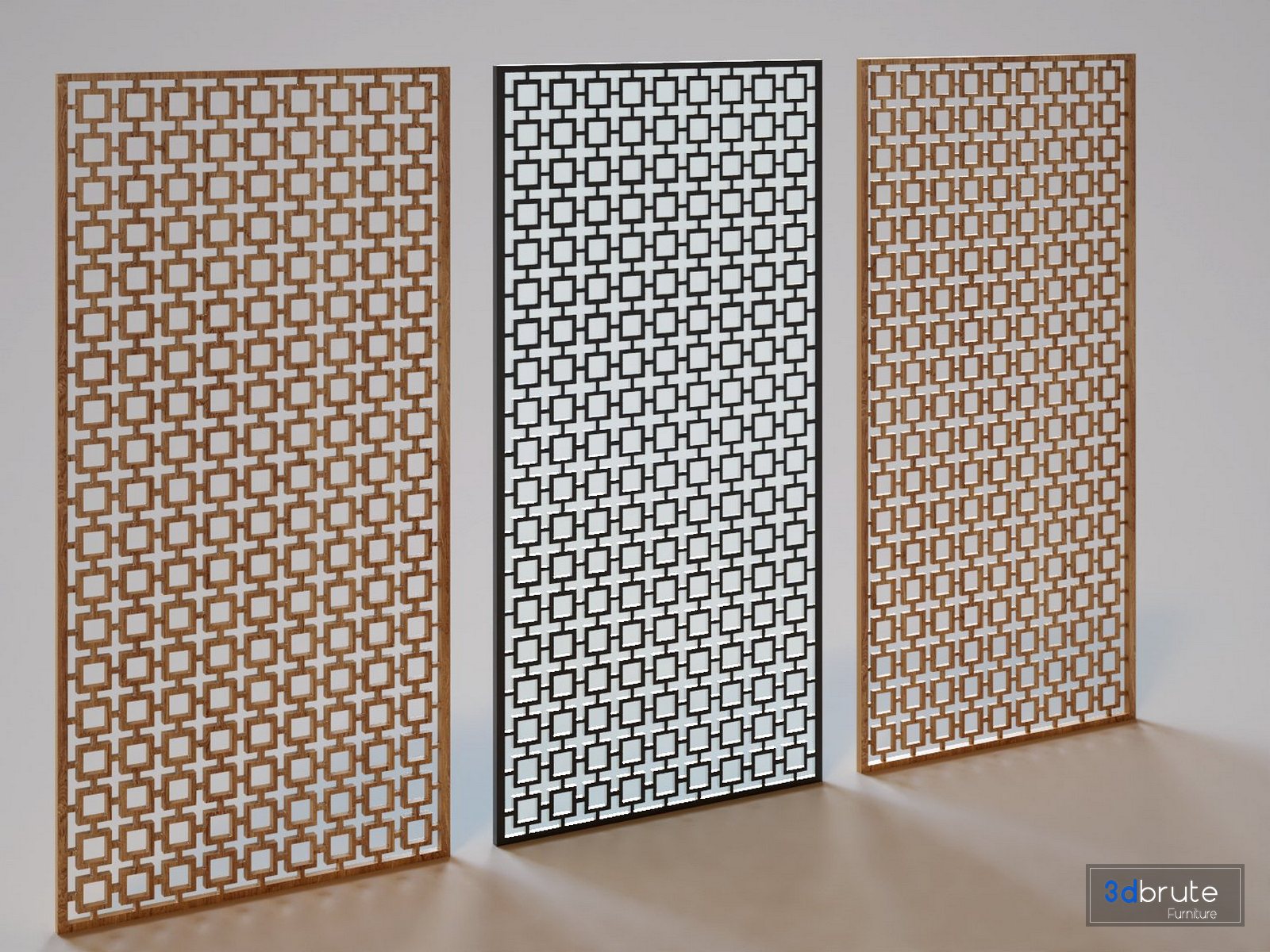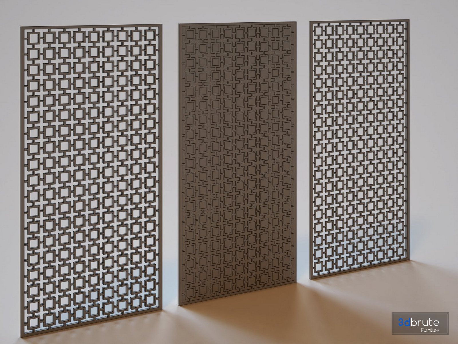 The rar file of the model includes 3 decorative partitions with a geometric pattern(one single design) shown in 3 different ways. |