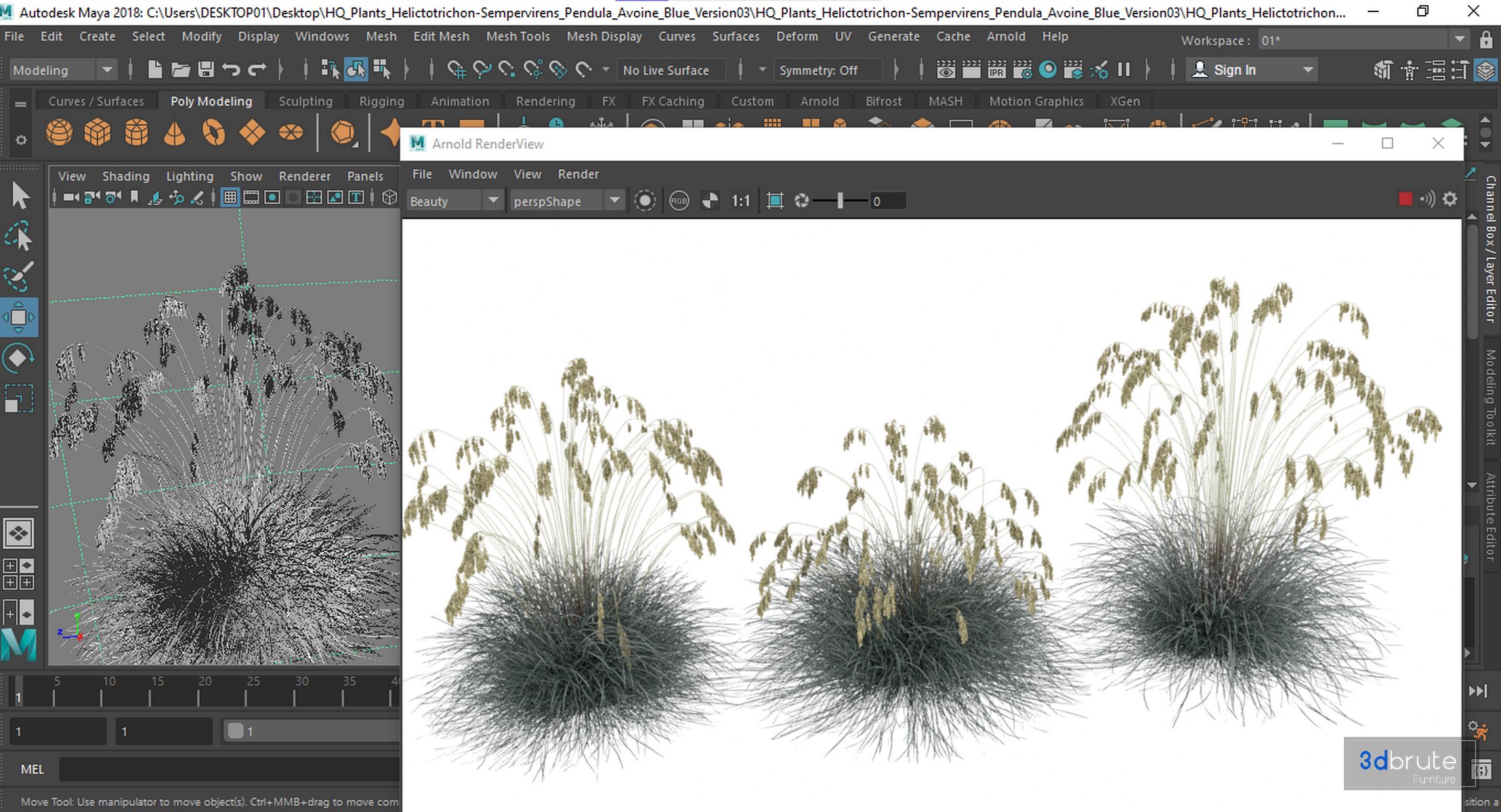 Description: It forms well-demarcated, densely mounded clumps of upright, silvery-blue leaves, reaching up to 75 cm in height. Flowering more profusely than the type species in late spring; the inflorescences protrude more than 60 cm above the foliage, at the hot end, and are distinctly drooping. Flowering is best assured in regions with cool springs and constant humidity, but this plant also deserves to be grown for its leaves alone. Cold climate plant, the leaves are evergreen in mild climates and semi-evergreen in colder regions. Few contracted pound rust during hot periods with high humidity. To ensure the plant a good disease-free longevity, offer it a situation in full sun and well-drained soil. 3 Different 3D models in the scene Height: 800mm & 600mm & 700mm 1_ Materials is archive (material library) _ To use the max file you need to use at 3dsmax 2015 |