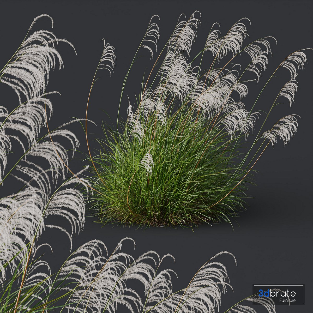Description: Miscanthus, known as ??elephant grass?? or Eulalia are very ??trendy?? in the garden, whether natural or sophisticated. These large ornamental grasses with silky inflorescences immediately bring a lot of relief and personality to exteriors! Of Chinese origin, Miscanthus with marcescent foliage are among the most interesting grasses to install in the garden: ultra hardy, they like all soils, liven up wild areas or structured beds in full sun. Extraordinary shimmering of inflorescences, multiple and changing colors of foliage, dimensions, flowering period, uses. 2 Different 3D models in the scene Height: 1200mm & 1100mm 1- Materials is archive (material library) Note: - To use the max file you need to use at 3dsmax 2015 |