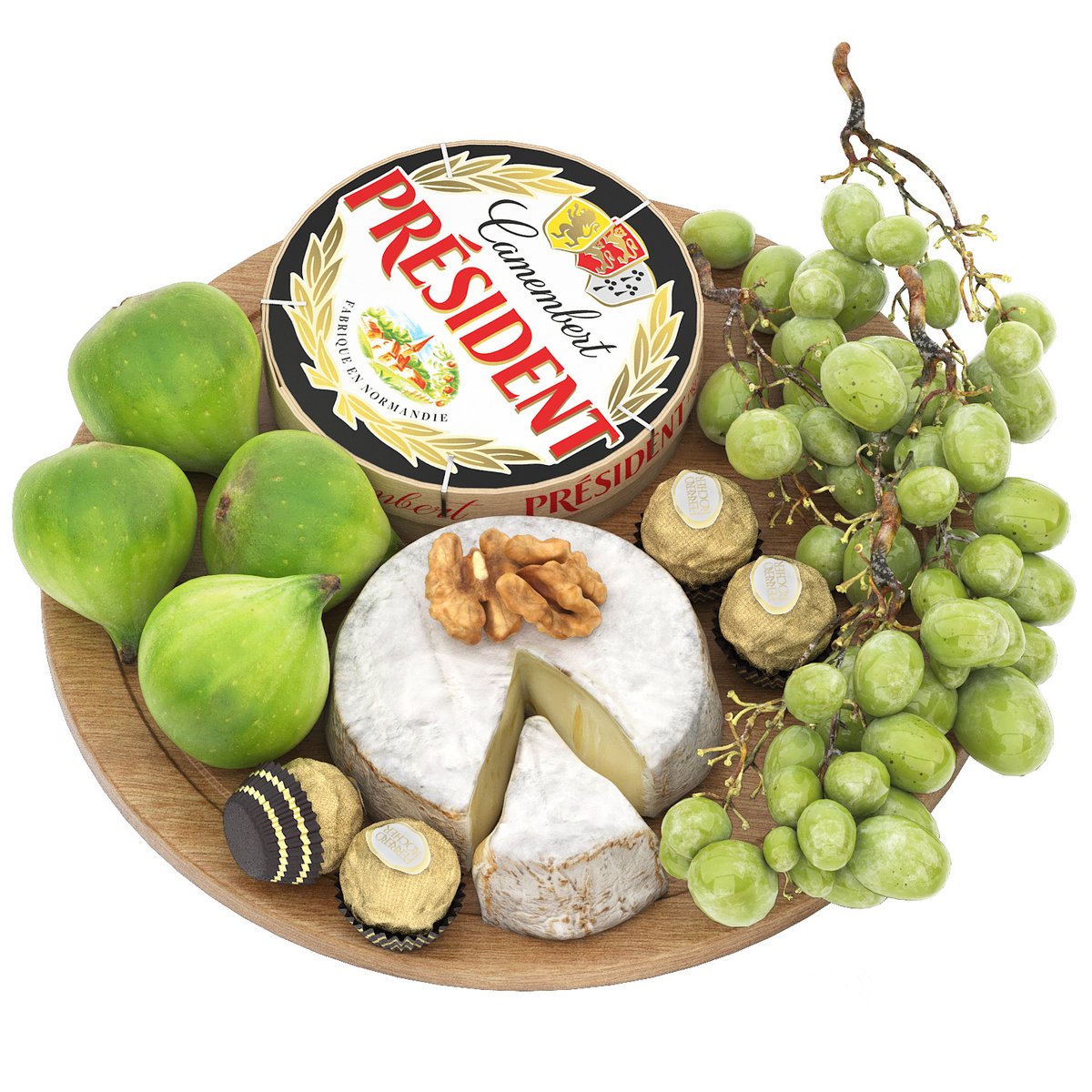 plate of cheese figs and grapes |