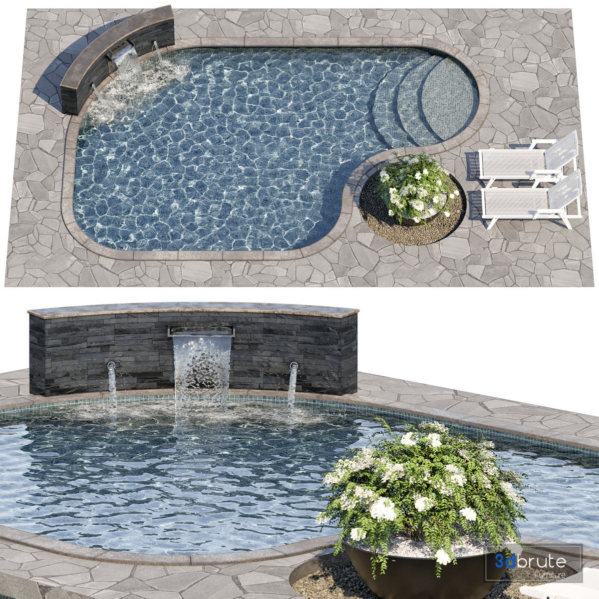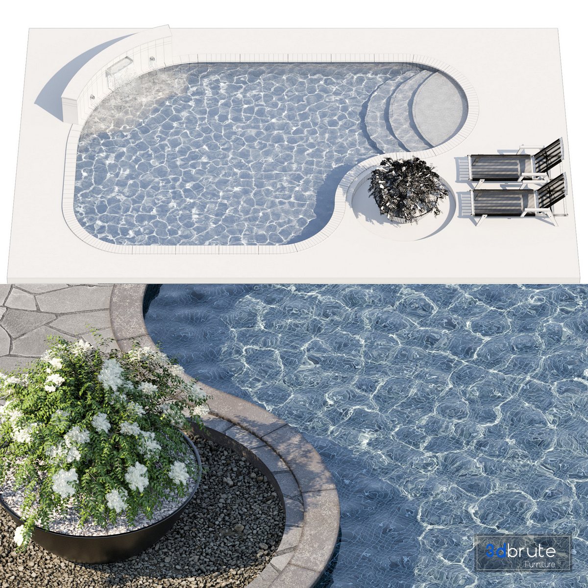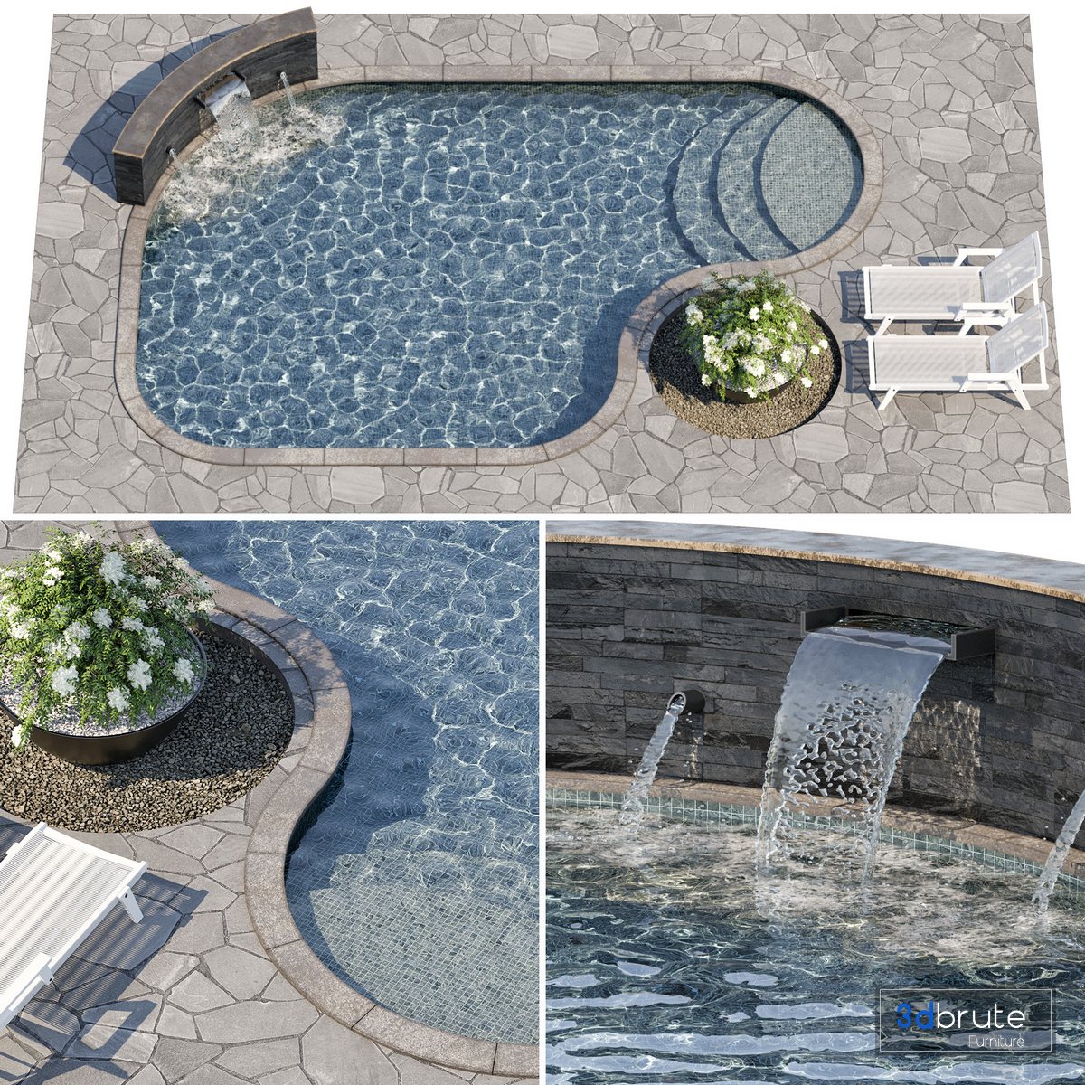 Description: The model of a swimming pool is made with high quality Polys: 1015923 10*7M2 |