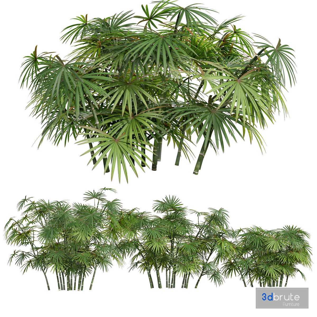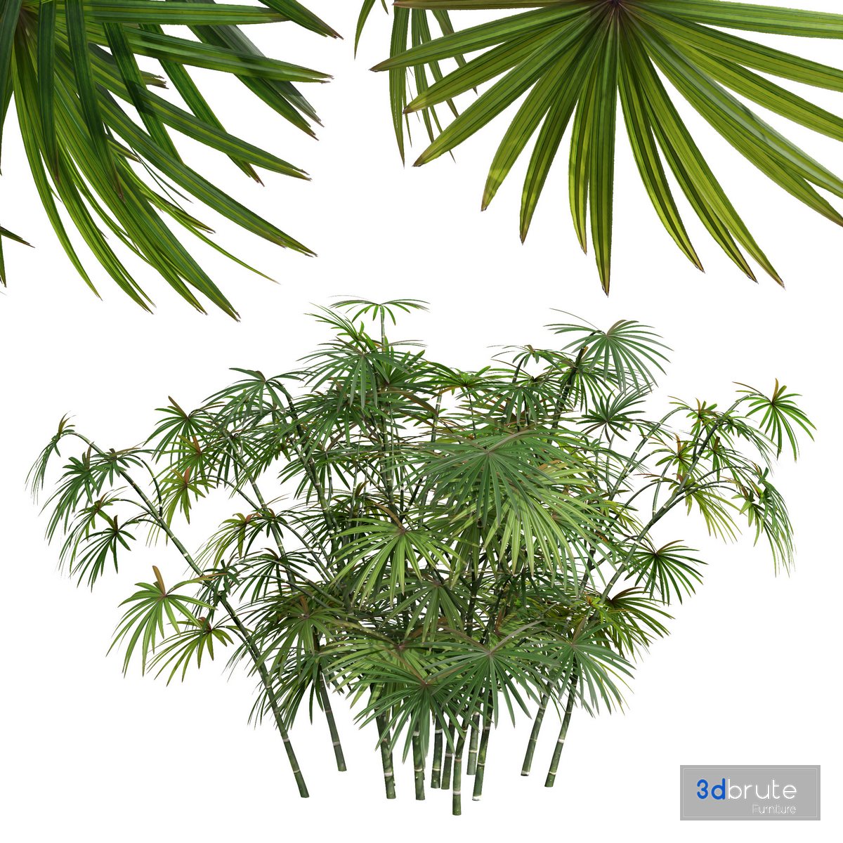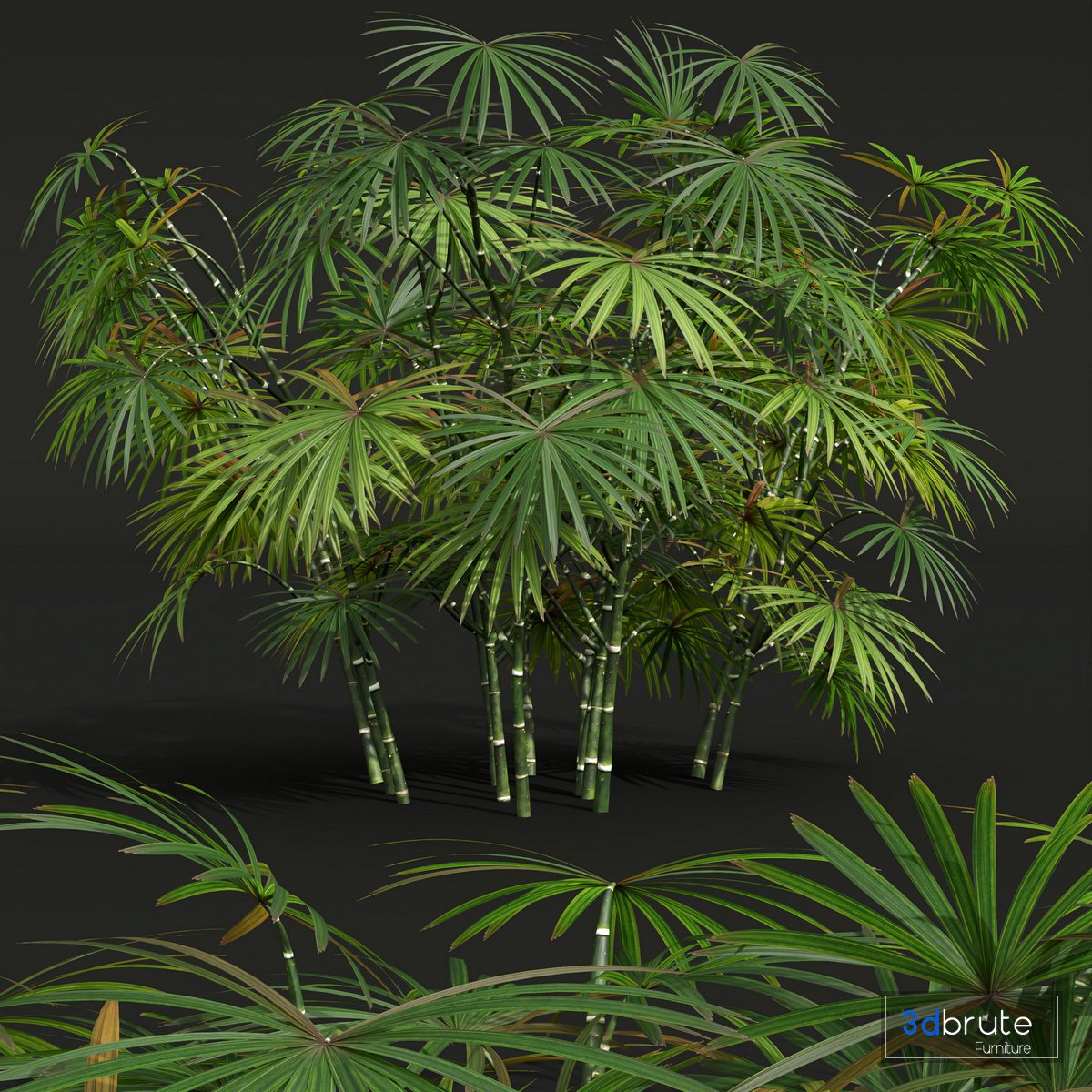 Description: Rhapis excelsa, also known as broadleaf lady palm or bamboo palm, is a species of fan palm (Arecaceae subfamily Coryphoideae, tribe Trachycarpeae) in the genus Rhapis, probably native to southern China and Taiwan. It is not known in the wild; all known plants come from cultivated groups in China. They were first collected by the Japanese for Tokugawa shogunate palaces, then popularity spread to Europe, and later to America where its low light and humidity requirements make it a common feature in malls and offices. The genus name is Greek - rhapis, meaning "needle"; and the species name is Latin for "tall", though R. excelsa is not the tallest in the genus 3 Different 3D models in the scene Height: 700mm & 900mm & 10000mm 1- Materials is archive (material library) Note: - To use the max file you need to use at 3dsmax 2015 If you have any problems for setting up the models, |