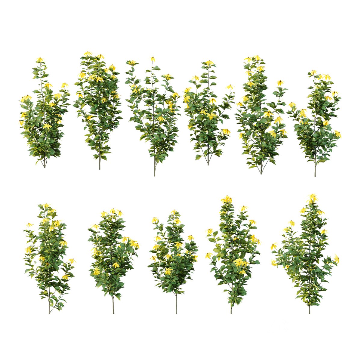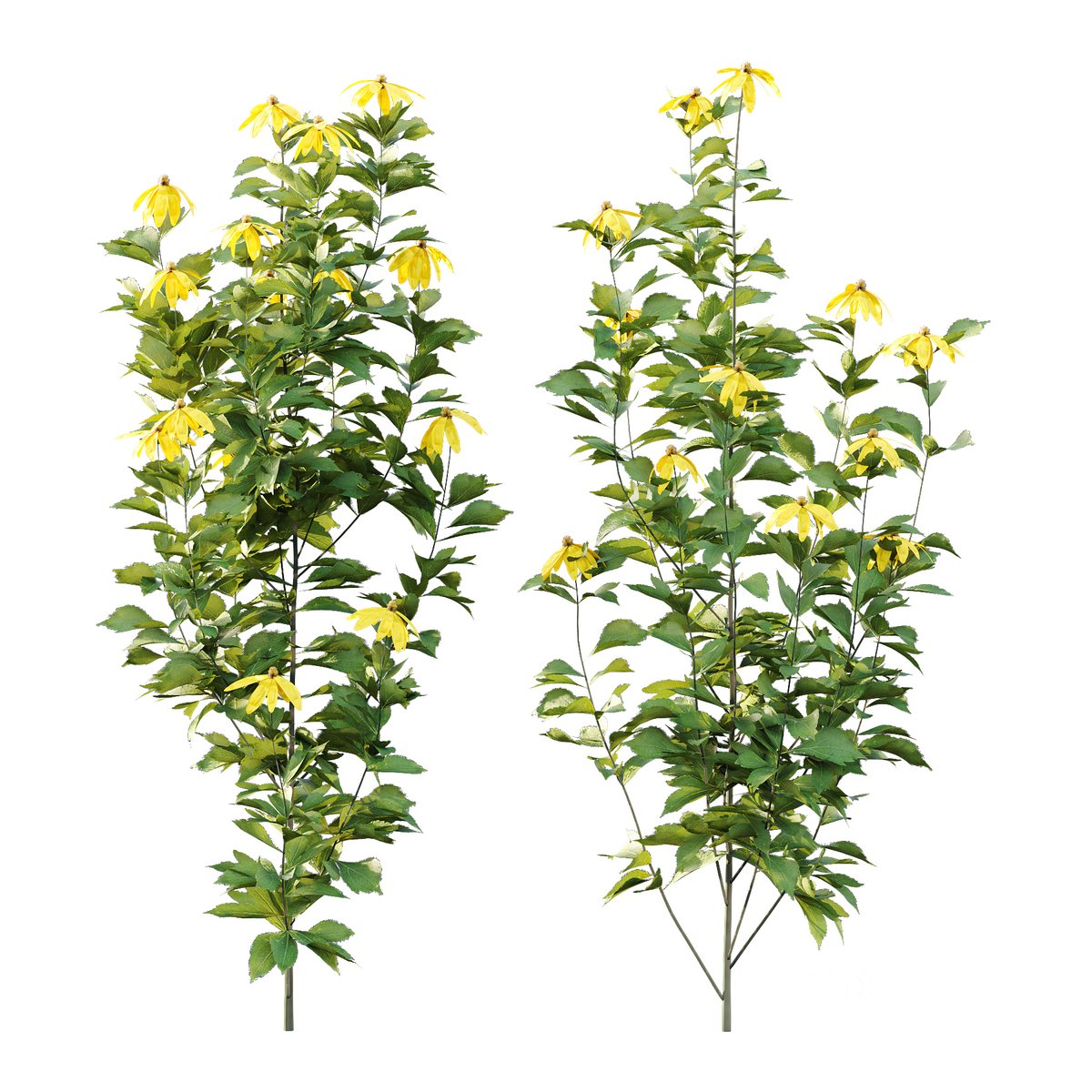 Rudbeckia laciniata Plant 04 (11 Plants) Rudbeckia laciniata, the cutleaf coneflower, is a species of flowering plant in the family Asteraceae. It is native to North America, where it is widespread in both Canada and the United States. Its natural habitat is wet sites in flood plains, along stream banks, and in moist forests. Common names other than cutleaf coneflower include cutleaf, goldenglow, green-headed coneflower, tall coneflower, sochan and thimbleweed. 11 Different Models 1-height: 140 cm & 160 cm Note: |