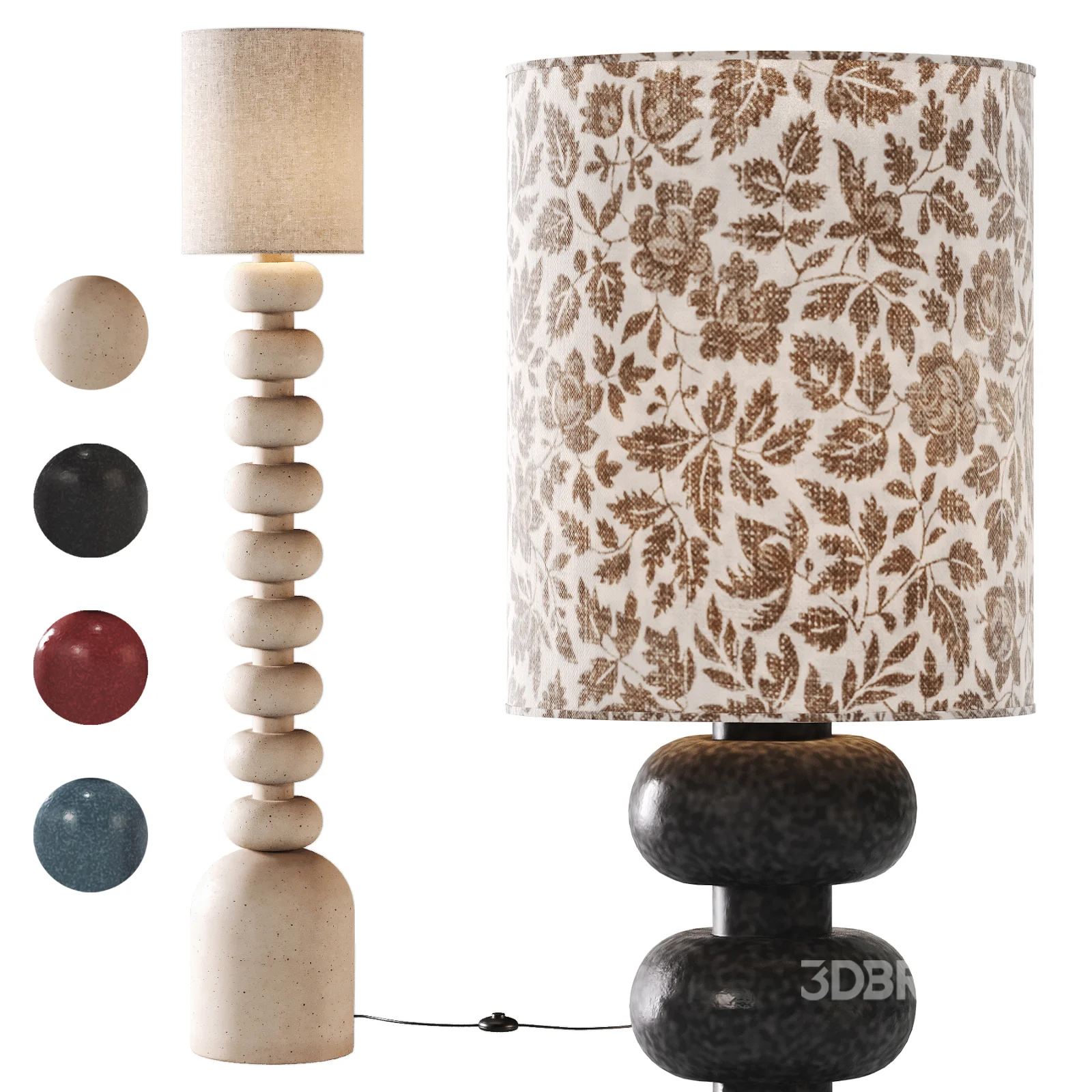Name: Sculptural Ceramic Cap Negre Lamp Technical Details: Description: The glossy glazed ceramic finishes add depth and realism through subtle surface variation and light interaction, capturing the character of handcrafted vintage ceramics. Optional color variations allow the lamp to adapt to different interior moods, from calm neutral spaces to bold statement compositions. The fabric lampshades introduce a warm natural contrast, enhancing the lamp’s cozy ambient lighting atmosphere. This decorative lighting piece is ideal for living rooms, bedrooms, hotel interiors, lounge areas, reading corners, and curated lifestyle scenes. It works both as a focal decorative element and as a complementary accent in modern, vintage-modern, Mediterranean, and luxury interior renders. Product reference: Key Features: Compatibility Notes: Optimization Notes: Tags: |