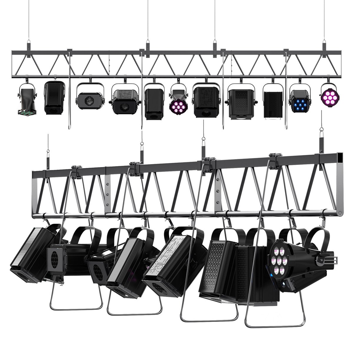 Model of a flat soffit truss. Name: Soft theater farm with lighting equipment Those who work in a V-Ray version lower than 3.1, be careful, in the materials in the BRDF section there is Microfaset GTR (GGX), if your version is older than 3.1, then the BRDF field will be empty. Choose Blinn, Phong or Ward - whichever is preferable for you. For Corona render, it is recommended to install version no lower than 1.5, since the glossiness of the materials is adjusted taking into account PBR. |