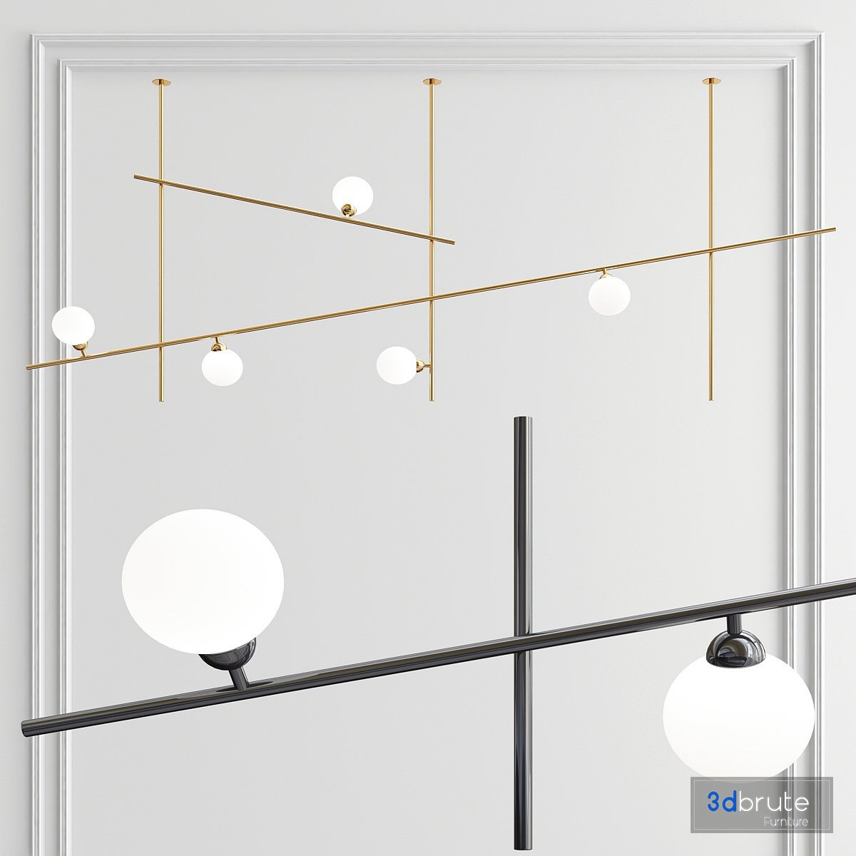 Description: 1. Tempo 8 Wide Minimalist Chandelier W=245cm 2. Fabbian Freeline F44 Led Pendant light W=270cm |