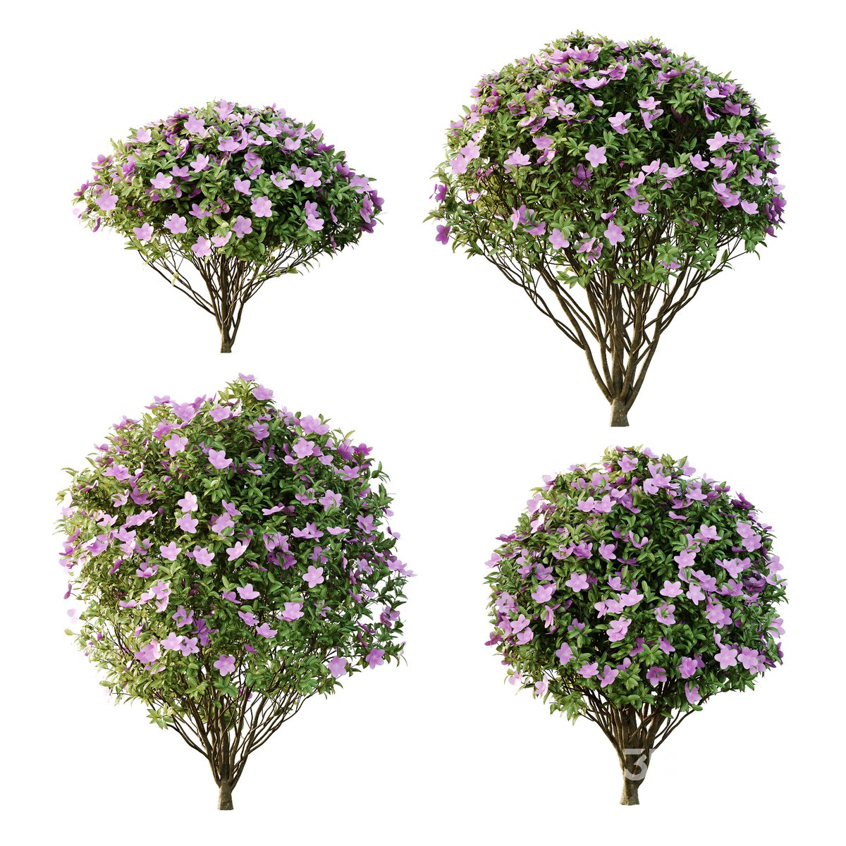 Tibouchina Semidecandra Bush 01 Tibouchina is a neotropical flowering plant genus in the family Melastomataceae. Species of this genus are subshrubs, shrubs or small trees and typically have purple flowers. They are native to Mexico, the Caribbean, and South America where they are found as far south as northern Argentina. Members of this genus are known as glory bushes, glory trees or princess flowers. The name Tibouchina is adapted from a Guianan indigenous name for a member of this genus. 4 different models 1-height: 100 cm & 150 cm & 160 cm & 180 cm 2- Materials is archive (material library) Corona mtl + Vray mtl + Standard mtl 3-Polys: 710k + Verts: 1181k 4- 4K texture + 4K material 5- BMP + JPEG (texture) , MAX , FBX , OBJ 2015 6- 3dmodels: MAX + FBX + OBJ 2015 7- Corona render + Vray render (Renderer Engine-MAX + FBX) Standard render (Renderer Engine-OBJ) 8- Models have unwrapped overlapping and maps is real world scale Note: To use the max file you need to use at 3dsmax 2015 Units: Centimeters Topology (quad mesh) You Can Use Turbo Smooth |