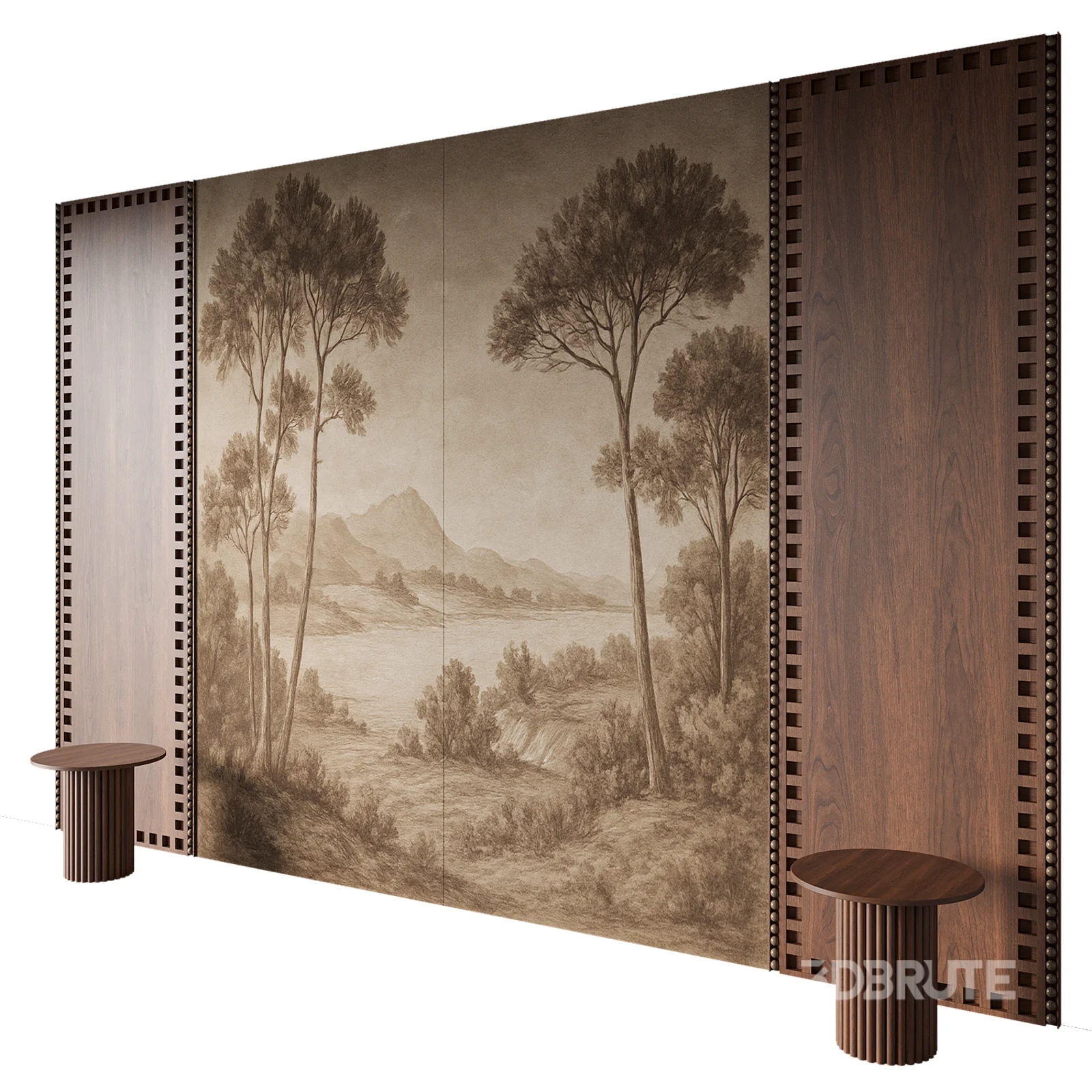 Винтажная декоративная настенная панель с пейзажным изображением, выполненным в классическом стиле. Мягкая сепийная цветовая гамма с изображением деревьев и природного ландшафта создаёт атмосферу уюта и элегантности. Панель отлично подходит для оформления интерьеров в классическом, винтажном и премиальном стиле, а также для жилых и общественных пространств. Может использоваться как акцентная стена или декоративный элемент интерьера. Millimetres: 4600 x 700 x 3000 mm Рендеры выполнены в Coronarenderer, конвертация материалов в Vray выполнена с помощью Vray-converter. Объекты, текстуры и материалы имеют логичные названия. Для Corona render, рекомендуется поставить версию не ниже 1.5, так как glossiness материалов настроена с учетом PBR. |