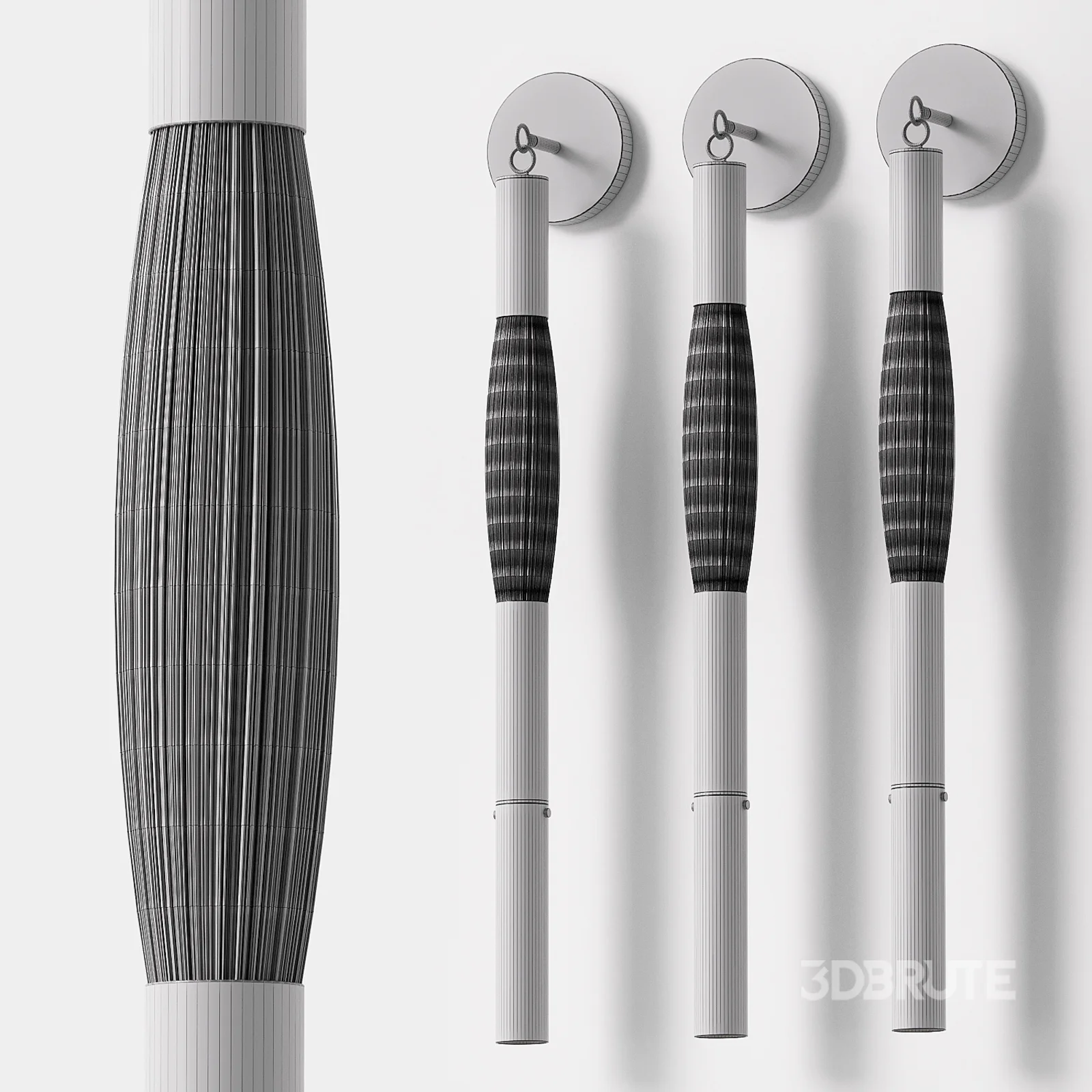 Millimetres: 130 x 100 x 820 mm Рендеры выполнены в Coronarenderer, конвертация материалов в Vray выполнена с помощью Vray-converter. Объекты, текстуры и материалы имеют логичные названия. Для Corona render, рекомендуется поставить версию не ниже 1.5, так как glossiness материалов настроена с учетом PBR. https://apparatusstudio.com/products/pip-horsehair-1-sconce?variant=42465704443967 |