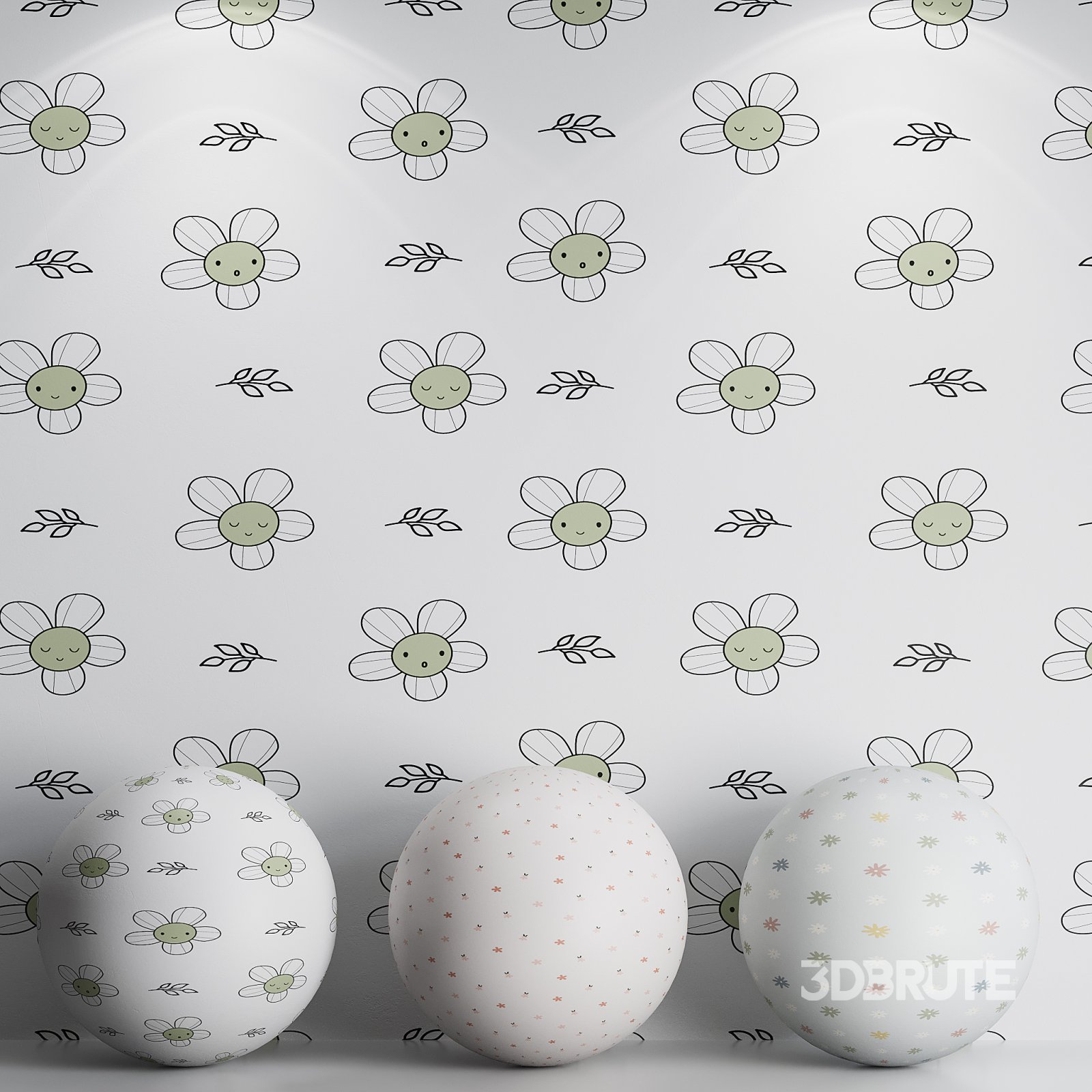 Name: Wallpaper 69 Tags: kids wallpaper, floral pattern, pastel decor, flower wall art, nursery design, 3D wallpaper, seamless wallpaper texture, daisy wallpaper, modern children’s room, soft color scheme, hand-drawn elements, botanical wallpaper, playful design, cheerful flowers, Corona Renderer, interior render, printable wall decor, high-quality texture, realistic visualization, baby room wallpaper |