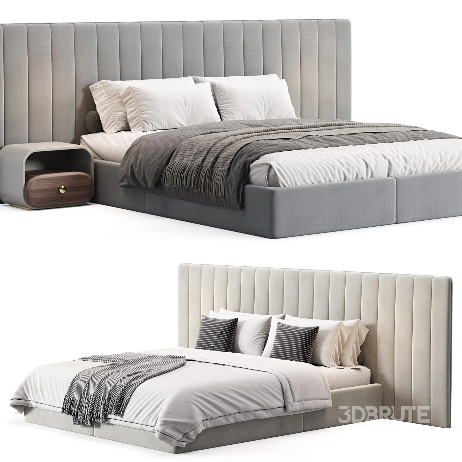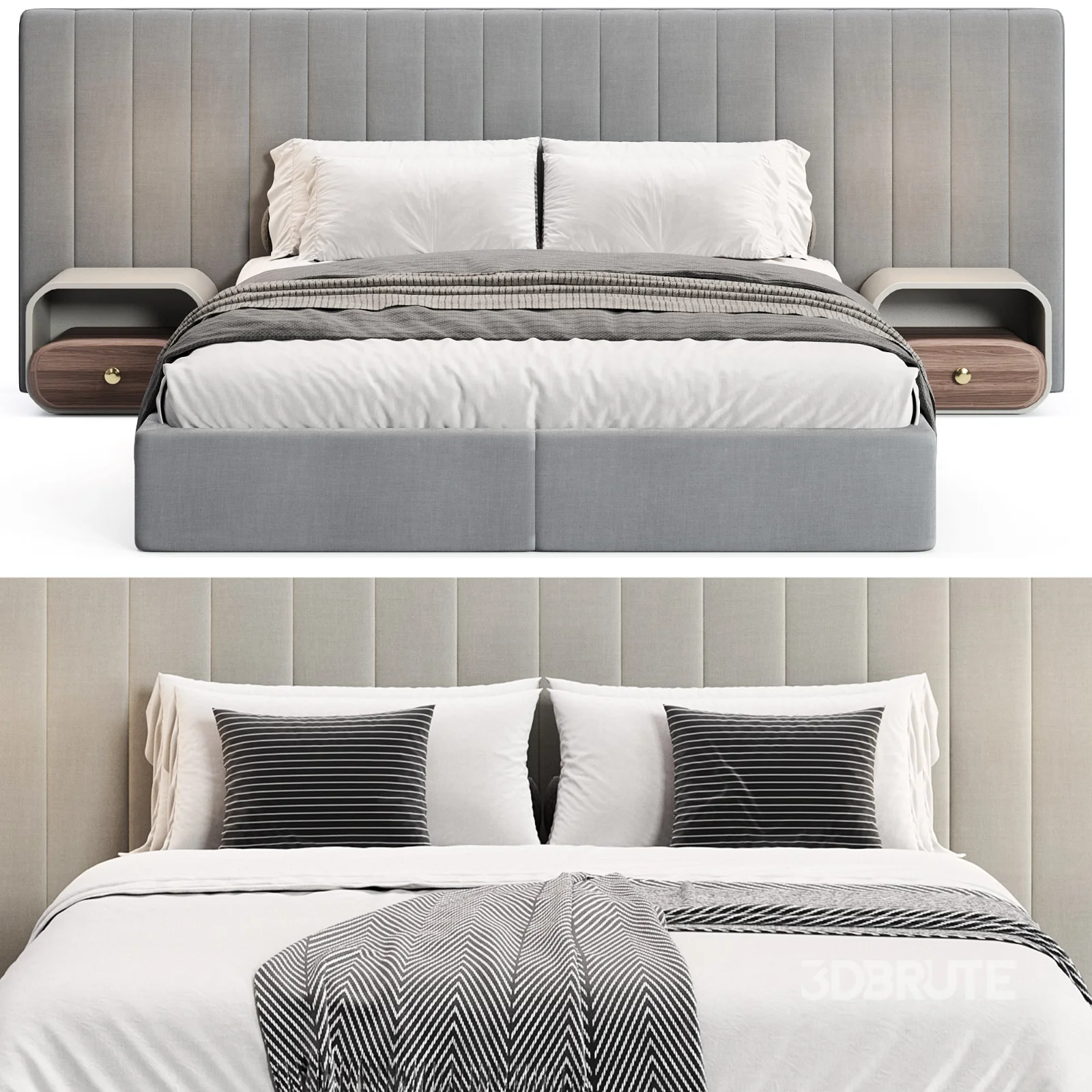 Walvia Gray Velvet Luxury Wide Headboard Bed |