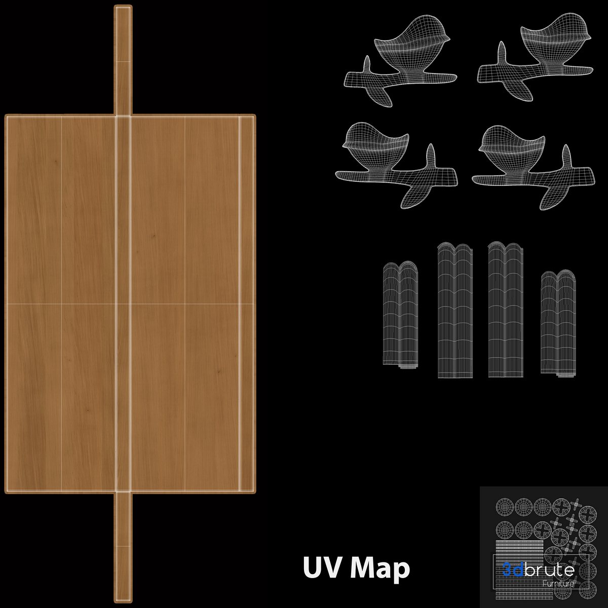 - The model has fully unwrapped UVs. The UVs are organized.